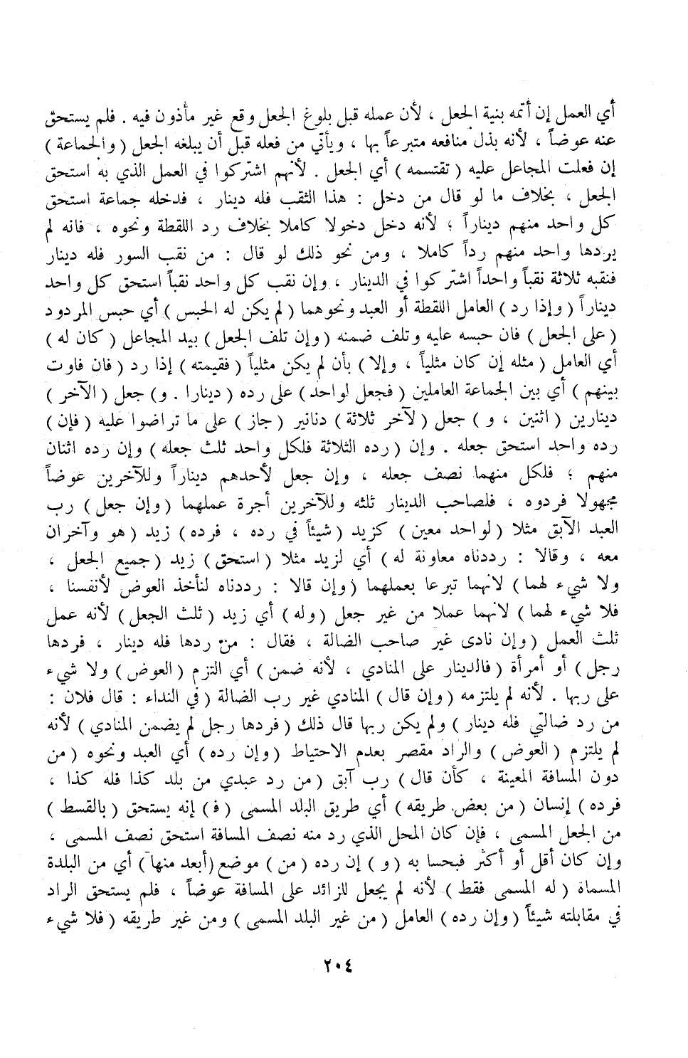 (وَإِنْ رَدَّهُ) أَيْ: الْعَبْدَ، وَنَحْوَهُ (مَنْ دُونِ الْمَسَافَةِ الْمُعَيَّنَةِ، كَأَنْ قَالَ) رَبُّ آبِقٍ مَنْ رَدَّ عَبْدِي مِنْ بَلَدِ كَذَا فَلَهُ كَذَا، فَرَدَّهُ إنْسَانٌ (مِنْ بَعْضِ طَرِيقِهِ) أَيْ: طَرِيقِ الْبَلَدِ الْمُسَمَّى (فَ) إنَّهُ يَسْتَحِقُّ (بِالْقِسْطِ) مِنْ الْجُعْلِ الْمُسَمَّى، فَإِنْ كَانَ الْمَحَلُّ الَّذِي رَدَّ مِنْهُ نِصْف الْمَسَافَةِ اسْتَحَقَّ نِصْفَ الْمُسَمَّى، وَإِنْ كَانَ أَقَلَّ أَوْ أَكْثَرَ فَبِحِسَابِهِ.