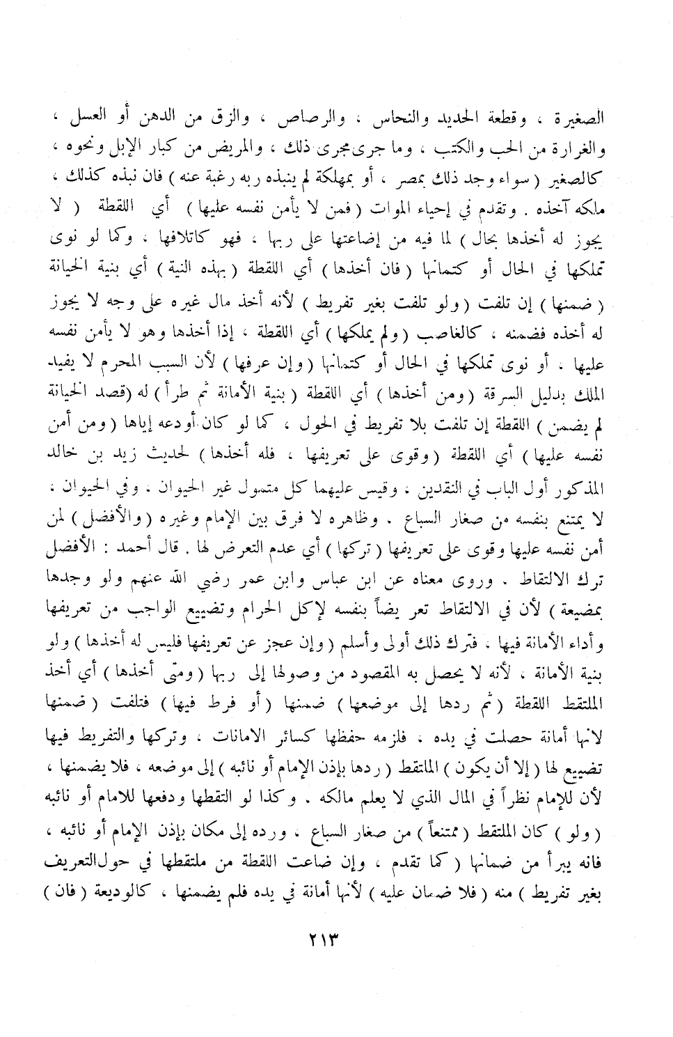الصَّغِيرَةِ، وَقِطَعِ الْحَدِيدِ، وَالنُّحَاسِ، وَالرَّصَاصِ، وَالزِّقِّ مِنْ الدُّهْنِ أَوْ الْعَسَلِ، وَالْغِرَارَةِ مِنْ الْحَبِّ، وَالْكُتُبِ، وَمَا جَرَى مُجْرَى ذَلِكَ، وَالْمَرِيضِ مِنْ كِبَارِ الْإِبِلِ وَنَحْوِهِ، كَالصَّغِيرِ (سَوَاءٌ وُجِدَ ذَلِكَ بِمِصْرٍ، أَوْ بِمَهْلَكَةٍ لَمْ يَنْبُذْهُ رَبُّهُ رَغْبَةً عَنْهُ) فَإِنْ نَبَذَهُ كَذَلِكَ، مَلَكَهُ آخِذُهُ، وَتَقَدَّمَ فِي إحْيَاءِ الْمَوَاتِ.