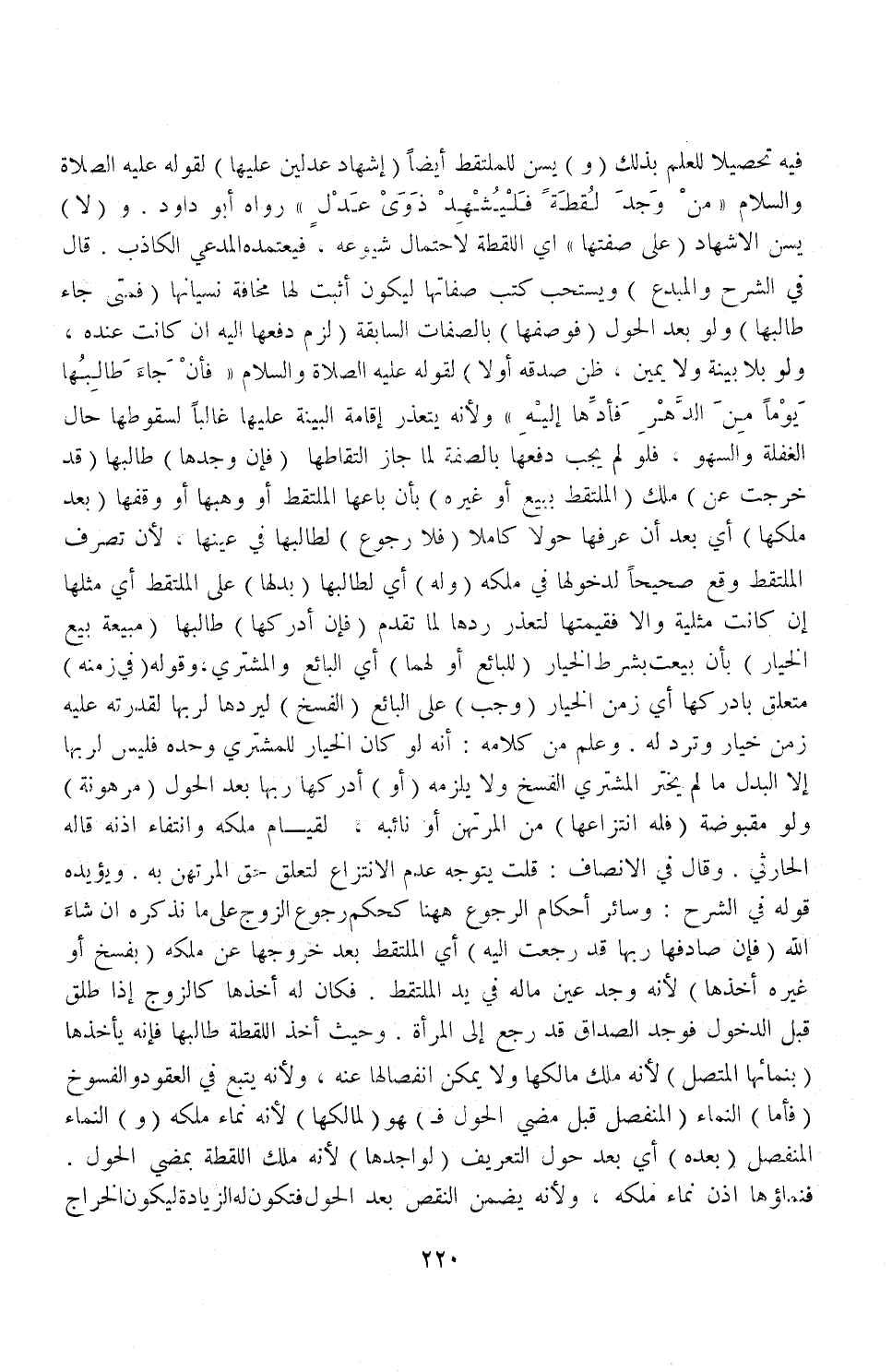 (وَ) يُسَنُّ لِلْمُلْتَقِطِ أَيْضًا (إشْهَادُ عَدْلَيْنِ عَلَيْهَا) لِقَوْلِهِ - عَلَيْهِ الصَّلَاةُ وَالسَّلَامُ - «مَنْ وَجَدَ لُقَطَةً فَلْيُشْهِدْ ذَوَيْ عَدْلٍ» رَوَاهُ أَبُو دَاوُد، وَ (لَا) يُسَنُّ الْإِشْهَادُ " (عَلَى صِفَتِهَا " أَيْ: اللُّقَطَةِ لِاحْتِمَالِ شُيُوعِهِ فَيَعْتَمِدُهُ الْمُدَّعِي الْكَاذِبُ قَالَ فِي الشَّرْحِ، وَالْمُبْدِعِ) ، وَيُسْتَحَبُّ كَتْبُ صِفَاتِهَا لِيَكُونَ أَثْبَتَ لَهَا مَخَافَةَ نِسْيَانِهَا.