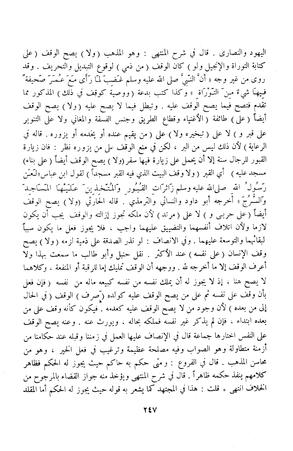 الْيَهُودِ، وَالنَّصَارَى قَالَ فِي شَرْحِ الْمُنْتَهَى:، وَهُوَ الْمَذْهَبُ.