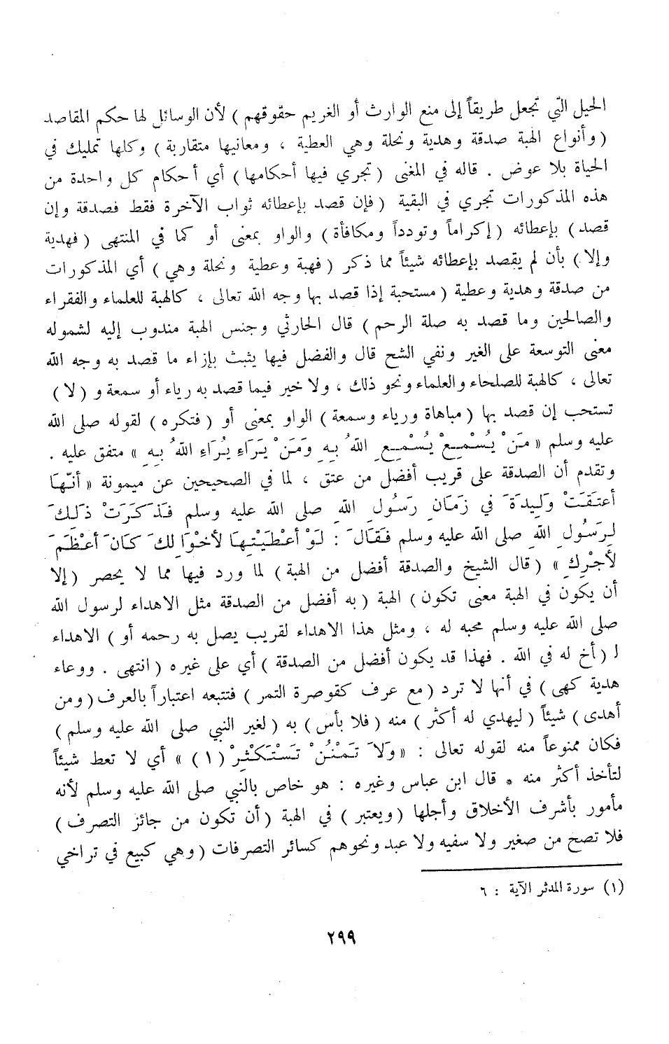 (وَمَنْ أَهْدَى) شَيْئًا (لِيُهْدَى لَهُ أَكْثَرُ) مِنْهُ (فَلَا بَأْسَ) بِهِ لِغَيْرِ النَّبِيِّ - صَلَّى اللَّهُ عَلَيْهِ وَسَلَّمَ -) فَكَانَ مَمْنُوعًا مِنْهُ لِقَوْلِهِ تَعَالَى {وَلا تَمْنُنْ تَسْتَكْثِرُ} [المدثر: ٦] أَيْ: لَا تُعْطِ شَيْئًا لِتَأْخُذَ أَكْثَرَ مِنْهُ قَالَ ابْنُ عَبَّاسٍ، وَغَيْرُهُ: هُوَ خَاصٌّ بِالنَّبِيِّ - صَلَّى اللَّهُ عَلَيْهِ وَسَلَّمَ -؛ لِأَنَّهُ مَأْمُورٌ بِأَشْرَفِ الْأَخْلَاقِ، وَأَجَلِّهَا.