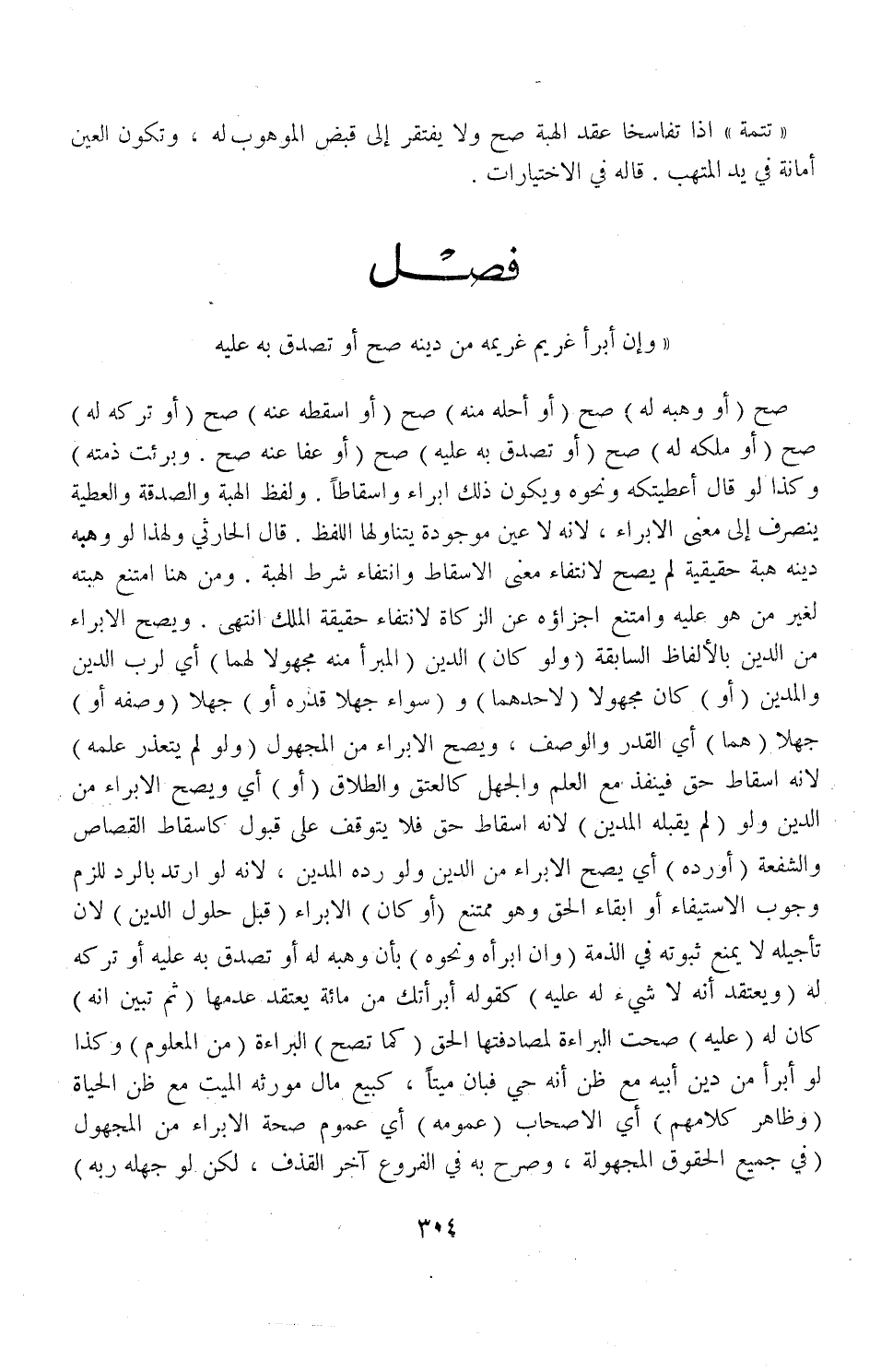 (فَصْلٌ وَإِنْ أَبْرَأَ غَرِيمٌ غَرِيمَهُ مِنْ دَيْنِهِ صَحَّ أَوْ تَصَدَّقَ) بِهِ عَلَيْهِ صَحَّ (أَوْ وَهَبَهُ لَهُ) صَحَّ (أَوْ أَحَلَّهُ مِنْهُ) صَحَّ (أَوْ أَسْقَطَهُ عَنْهُ) صَحَّ (أَوْ تَرَكَهُ لَهُ) صَحَّ (أَوْ مَلَّكَهُ لَهُ) صَحَّ (أَوْ تَصَدَّقَ بِهِ عَلَيْهِ) صَحَّ (أَوْ عَفَا عَنْهُ صَحَّ وَبَرِئَتْ ذِمَّتُهُ) وَكَذَا لَوْ قَالَ أَعْطَيْتُكَهُ وَنَحْوَهُ وَيَكُونُ ذَلِكَ إبْرَاءً وَإِسْقَاطًا وَلَفْظُ الْهِبَةِ وَالصَّدَقَةِ وَالْعَطِيَّةِ يَنْصَرِفُ إلَى مَعْنَى الْإِبْرَاءِ لِأَنَّهُ لَا عَيْنَ مَوْجُودَةٌ يَتَنَاوَلُهَا اللَّفْظُ قَالَ الْحَارِثِيُّ: وَلِهَذَا لَوْ وَهَبَهُ دَيْنَهُ هِبَةً حَقِيقِيَّةً لَمْ يَصِحَّ لِانْتِفَاءِ مَعْنَى الْإِسْقَاطِ وَانْتِفَاءِ شَرْطِ الْهِبَةِ وَمِنْ هُنَا امْتَنَعَ هِبَتُهُ لِغَيْرِ مَنْ هُوَ عَلَيْهِ وَامْتَنَعَ إجْزَاؤُهُ عَنْ الزَّكَاةِ لِانْتِفَاءِ حَقِيقَةِ الْمِلْكِ انْتَهَى وَيَصِحُّ الْإِبْرَاءُ مِنْ الدَّيْنِ بِالْأَلْفَاظِ السَّابِقَةِ.