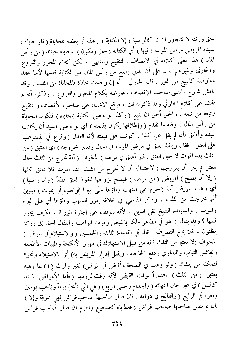 حَقِّ وَرَثَتِهِ لَا تَتَجَاوَزُ الثُّلُثَ كَالْوَصِيَّةِ (إلَّا الْكِتَابَةُ) لِرَقِيقِهِ أَوْ بَعْضِهِ بِمُحَابَاةٍ (فَلَوْ حَابَاهُ) سَيِّدُهُ الْمَرِيضُ مَرَضَ الْمَوْتِ (فِيهَا) أَيْ: الْكِتَابَةِ (جَازَ وَتَكُونُ) الْمُحَابَاةُ حِينَئِذٍ (مِنْ رَأْسِ الْمَالِ) هَذَا مَعْنَى كَلَامِهِ فِي الْإِنْصَافِ وَالتَّنْقِيحِ وَالْمُنْتَهَى، لَكِنَّ كَلَامَ الْمُحَرَّرِ وَالْفُرُوعِ وَالْحَارِثِيِّ وَغَيْرِهِمْ يَدُلُّ عَلَى أَنَّ الَّذِي يَصِحُّ مِنْ رَأْسِ الْمَالِ هُوَ الْكِتَابَةُ نَفْسُهَا لِأَنَّهَا عَقْدُ مُعَاوَضَةٍ كَالْبَيْعِ مِنْ الْغَيْرِ.