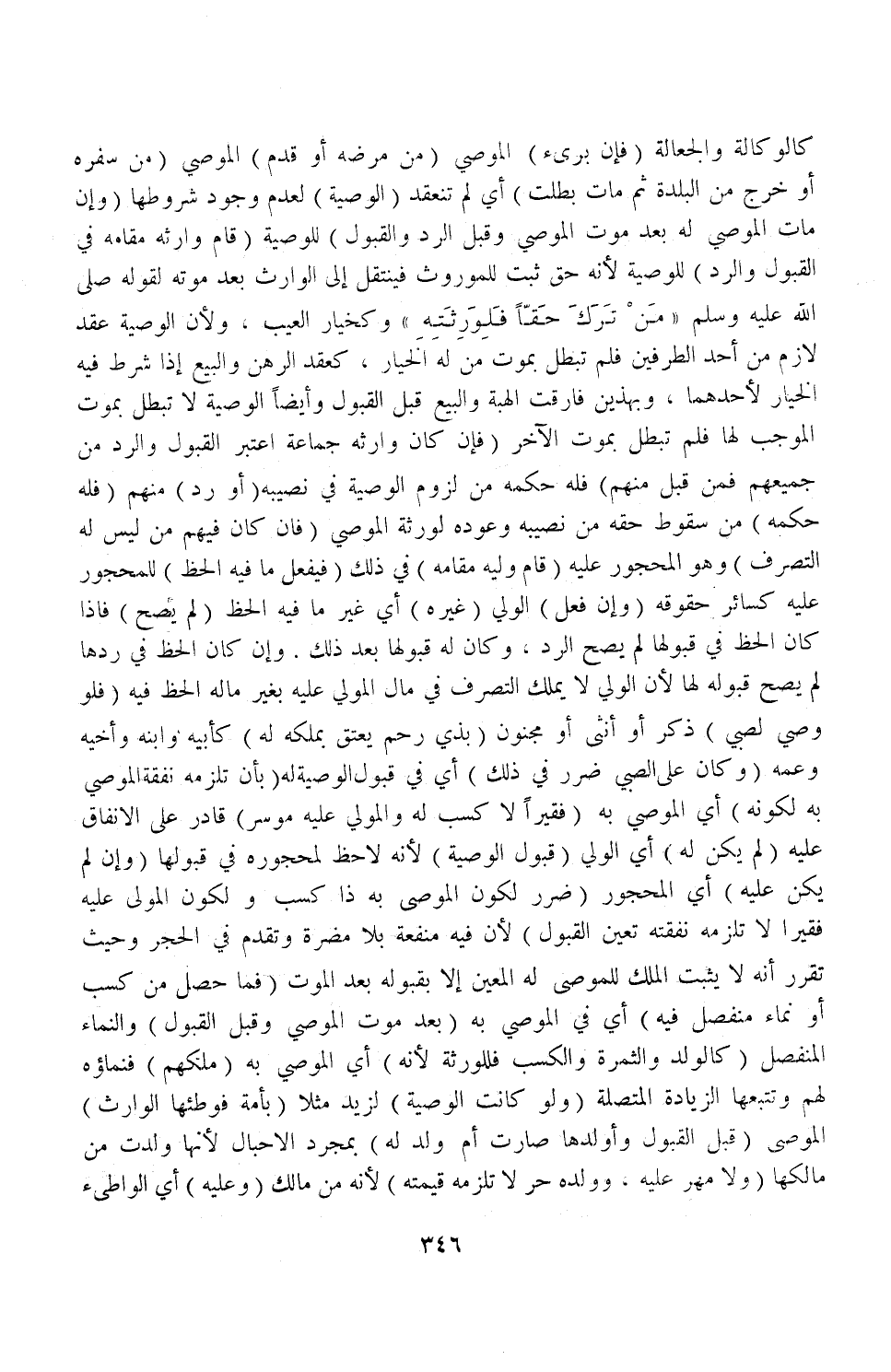 (فَإِنْ كَانَ فِيهِمْ مَنْ لَيْسَ لَهُ التَّصَرُّفُ) وَهُوَ الْمَحْجُورُ عَلَيْهِ (قَامَ وَلِيُّهُ مَقَامَهُ) فِي ذَلِكَ (فَيَفْعَلُ مَا فِيهِ الْحَظُّ) لِلْمَحْجُورِ عَلَيْهِ كَسَائِرِ حُقُوقِهِ (وَإِنْ فَعَلَ) الْوَلِيُّ (غَيْرَهُ) أَيْ: غَيْرَ مَا فِيهِ الْحَظُّ (لَمْ يَصِحَّ) فَإِذَا كَانَ الْحَظُّ فِي قَبُولِهَا لَمْ يَصِحَّ الرَّدُّ وَكَانَ لَهُ قَبُولُهَا بَعْدَ ذَلِكَ وَإِنْ كَانَ الْحَظُّ فِي رَدِّهَا لَمْ يَصِحَّ قَبُولُهُ لَهَا لِأَنَّ الْوَلِيَّ لَا يَمْلِكُ التَّصَرُّفَ فِي مَالِ الْمُوَلَّى عَلَيْهِ بِغَيْرِ مَا لَهُ الْحَظُّ فِيهِ.