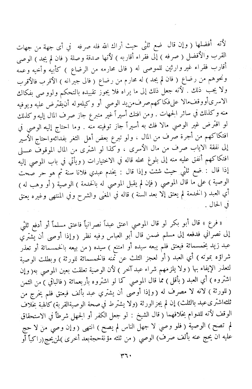 (وَإِنْ قَالَ ضَعْ ثُلُثِي حَيْثُ أَرَاك اللَّهُ فَلَهُ صَرْفُهُ فِي أَيْ: جِهَةٍ مِنْ جِهَاتِ الْقُرْبِ وَالْأَفْضَلُ) صَرْفُهُ (إلَى فُقَرَاءِ أَقَارِبِهِ) لِأَنَّهَا صَدَقَةٌ وَصِلَةٌ (فَإِنْ لَمْ يَجِدْ) الْوَصِيُّ أَقَارِبَ فُقَرَاءَ غَيْرَ وَارِثِينَ لِلْمُوصَيْ لَهُ (فَإِلَى مَحَارِمِهِ مِنْ الرَّضَاعِ) كَأَبِيهِ وَأَخِيهِ وَعَمِّهِ وَنَحْوِهِمْ مِنْ رَضَاعٍ (فَإِنْ لَمْ يَجِدْ) لَهُ مَحَارِمَ مِنْ رَضَاعٍ (فَإِلَى جِيرَانِهِ) الْأَقْرَبِ فَالْأَقْرَبِ وَلَا يَجِبُ ذَلِكَ لِأَنَّهُ جَعَلَ ذَلِكَ إلَى مَا يَرَاهُ فَلَا يَجُوزُ تَقْيِيدُهُ بِالتَّحَكُّمِ وَلَوْ وَصَّى بِفِكَاكِ الْأَسْرَى أَوْ وَقَفَ مَالًا عَلَى فِكَاكِهِمْ صُرِفَ مِنْ يَدِ الْوَصِيِّ أَوْ وَكِيلِهِ وَلَهُ أَنْ يَقْتَرِضَ عَلَيْهِ وَيُوفِيَهُ مِنْهُ وَكَذَلِكَ فِي سَائِرِ الْجِهَاتِ وَمَنْ افْتَكَّ أَسِيرًا غَيْرُ مُتَبَرِّعٍ جَازَ صَرْفُ الْمَالِ إلَيْهِ وَكَذَلِكَ لَوْ اقْتَرَضَ غَيْرُ الْوَصِيِّ مَالًا فَكَّ بِهِ أَسِيرًا جَازَ تَوْفِيَتُهُ مِنْهُ وَمَا احْتَاجَ إلَيْهِ الْوَصِيُّ فِي افْتِكَاكِهِمْ مِنْ أُجْرَةٍ صُرِفَ مِنْ الْمَالِ.