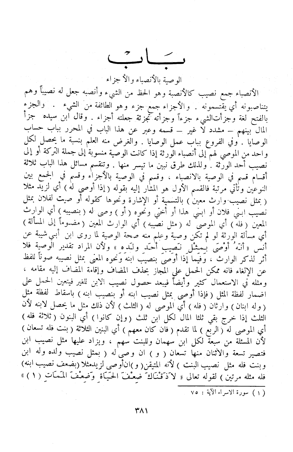 [بَابُ الْوَصِيَّةِ بِالْأَنْصِبَاءِ وَالْأَجْزَاءِ]