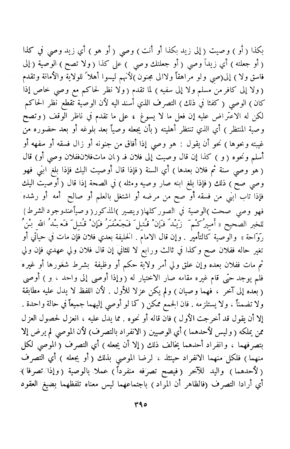 (وَتَصِحُّ وَصِيَّةُ الْمُنْتَظَرِ) أَيْ: الَّذِي تُنْتَظَرُ أَهْلِيَّتُهُ (بِأَنْ يَجْعَلَهُ وَصِيًّا بَعْدَ بُلُوغِهِ أَوْ بَعْدَ حُضُورِهِ مِنْ غَيْبَتِهِ وَنَحْوِهَا) نَحْوَ أَنْ يَقُولَ: هُوَ وَصِيِّي إذَا أَفَاقَ مِنْ جُنُونِهِ أَوْ زَالَ فِسْقُهُ أَوْ سَفَهُهُ أَوْ أَسْلَمَ وَنَحْوُهُ.