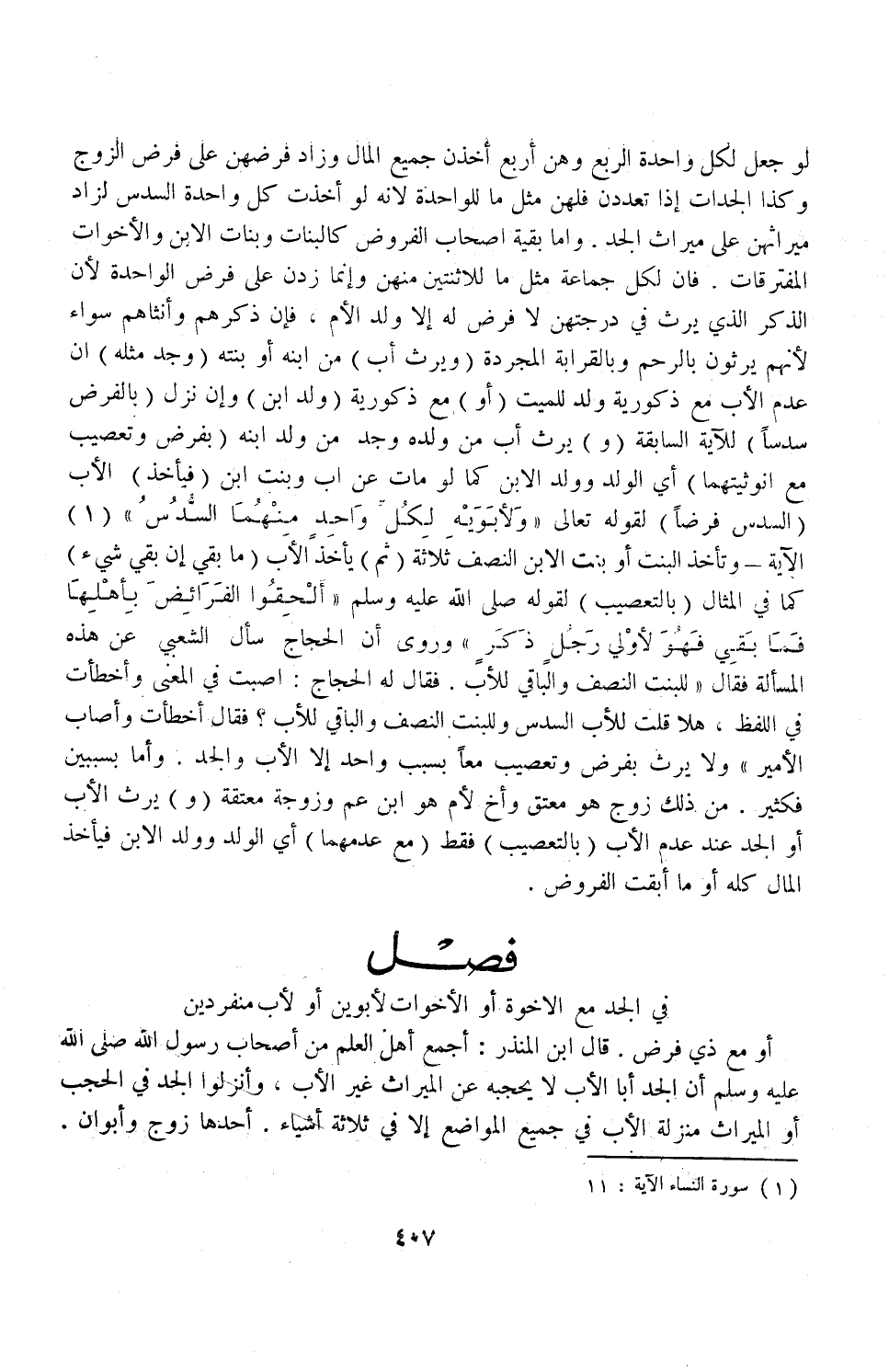 َ أَوْ مَعَ ذِي فَرْضٍ.