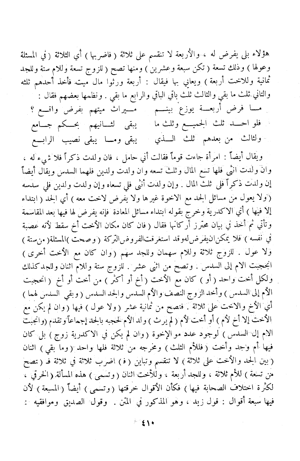 مَا فَرْضُ أَرْبَعَةٍ يُوَزَّعُ بَيْنهمْ ... مِيرَاثُ مَيِّتِهِمْ بِفَرْضٍ وَاقِعِ