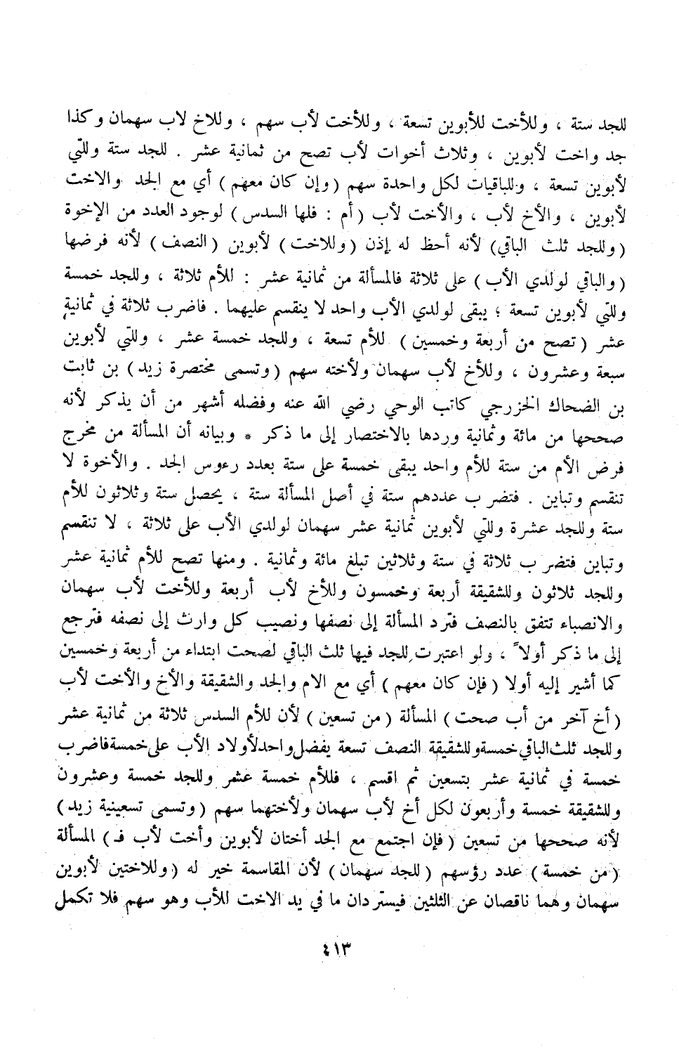 (وَتُسَمَّى مُخْتَصَرَةَ) (زَيْدِ) بْنِ ثَابِتِ بْنِ الضَّحَّاكِ الْخَزْرَجِيِّ كَاتِبِ الْوَحْيِ - رَضِيَ اللَّهُ عَنْهُ - وَفَضْلُهُ أَشْهَرُ مِنْ أَنْ يُذْكَرَ لِأَنَّهُ صَحَّحَهَا مِنْ مِائَةٍ وَثَمَانِيَةٍ وَرَدَّهَا بِالِاخْتِصَارِ إلَى مَا ذَكَرَ وَبَيَانُهُ أَنَّ الْمَسْأَلَةَ مِنْ مَخْرَجِ فَرْضِ الْأُمِّ مِنْ سِتَّةٍ لِلْأُمِّ وَاحِدٌ يَبْقَى خَمْسَةٌ عَلَى سِتَّةٍ بِعَدَدِ رُءُوسِ الْجَدِّ وَالْإِخْوَةِ لَا تَنْقَسِم وَتُبَايَنُ.