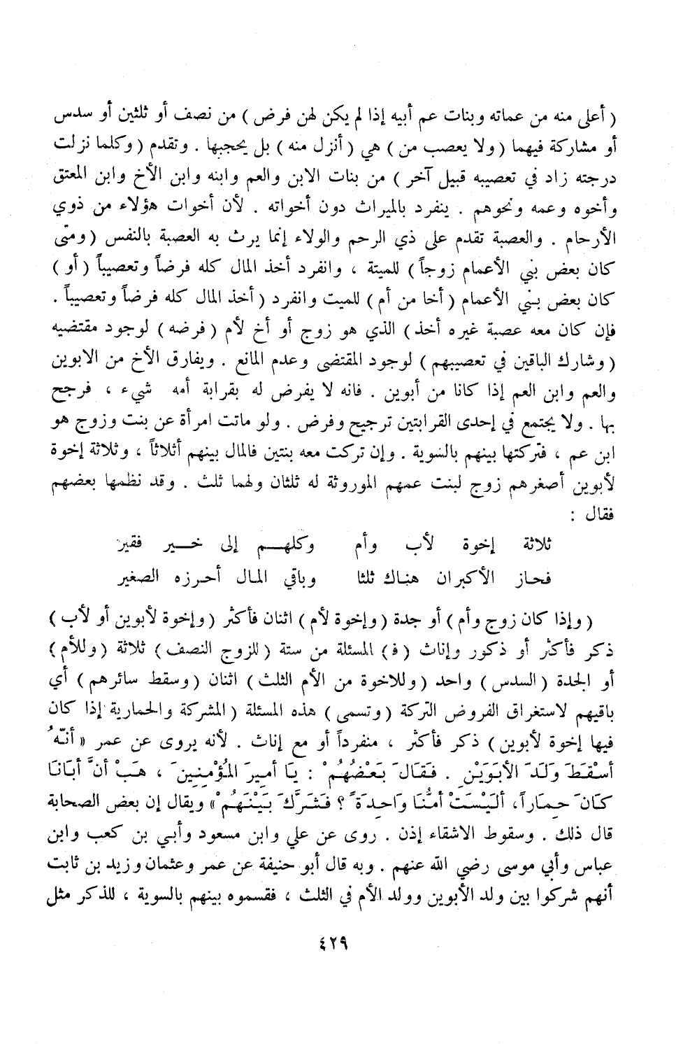 ثَلَاثَةُ إخْوَةٍ لِأَبٍ وَأُمٍّ ... وَكُلُّهُمْ إلَى خَيْرٍ فَقِيرُ