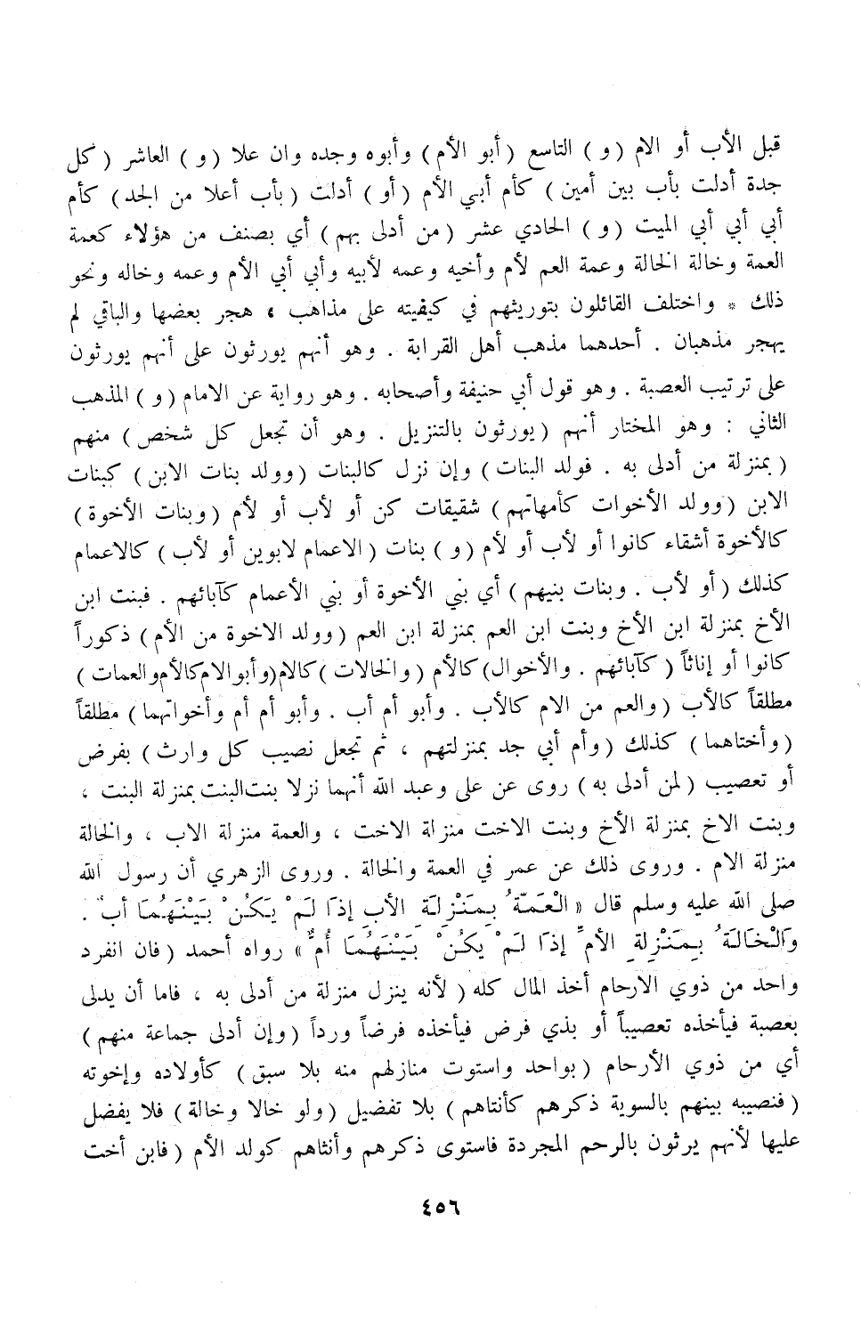 (وَ) الْحَادِيَ عَشَرَ (مَنْ أَدْلَى بِهِمْ) أَيْ بِصِنْفٍ مِنْ هَؤُلَاءِ كَعَمَّةِ الْعَمَّةِ وَخَالَةِ الْخَالَةِ وَعَمَّةِ الْعَمِّ لِأُمٍّ وَأَخِيهِ وَعَمِّهِ لِأَبِيهِ وَأَبِي أَبِي الْأُمِّ وَعَمِّهِ وَخَالِهِ وَنَحْوِ ذَلِكَ وَاخْتَلَفَ الْقَائِلُونَ بِتَوْرِيثِهِمْ فِي كَيْفِيَّتِهِ عَلَى مَذَاهِبَ هُجِرَ بَعْضُهَا وَالْبَاقِي لَمْ يُهْجَرْ مَذْهَبَانِ: أَحَدُهُمَا مَذْهَبُ أَهْلِ الْقَرَابَةِ وَهُوَ أَنَّهُمْ يُوَرَّثُونَ عَلَى أَنَّهُمْ يُوَرَّثُونَ عَلَى تَرْتِيبِ الْعَصَبَةِ وَهُوَ قَوْلُ أَبِي حَنِيفَةَ وَأَصْحَابِهِ وَهُوَ رِوَايَةٌ عَنْ الْإِمَامِ.