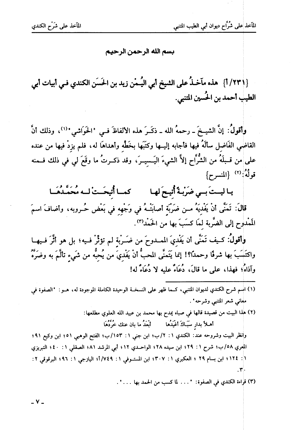 هذه مآخذ على الشيخ أبي اليمن زيد بن الحسن الكندي في أبيات أبي الطيب أحمد بن الحسين المتنبي.