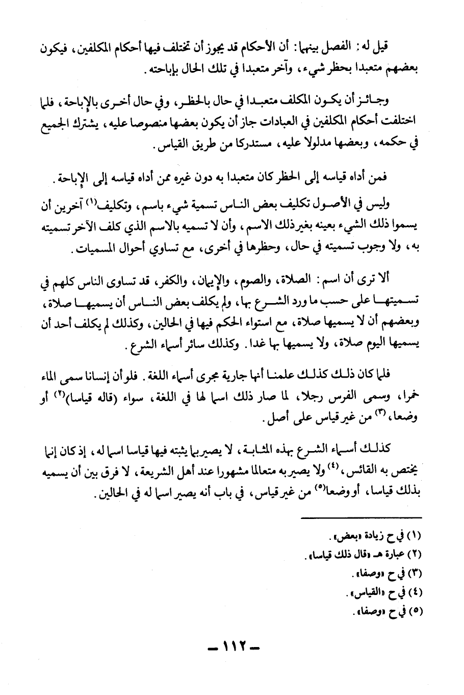 وَلَيْسَ فِي الْأُصُولِ تَكْلِيفُ بَعْضِ النَّاسِ تَسْمِيَةَ شَيْءٍ بِاسْمٍ، وَتَكْلِيفُ آخَرِينَ أَنْ يُسَمُّوا ذَلِكَ الشَّيْءَ بِعَيْنِهِ بِغَيْرِ ذَلِكَ الِاسْمِ، وَأَنْ لَا تُسَمِّيَهُ بِالِاسْمِ الَّذِي كُلِّفَ الْآخَرُ تَسْمِيَتَهُ بِهِ، وَلَا وُجُوبُ تَسْمِيَتِهِ فِي حَالٍ، وَحَظْرُهَا فِي أُخْرَى، مَعَ تَسَاوِي أَحْوَالِ الْمُسَمَّيَاتِ.
