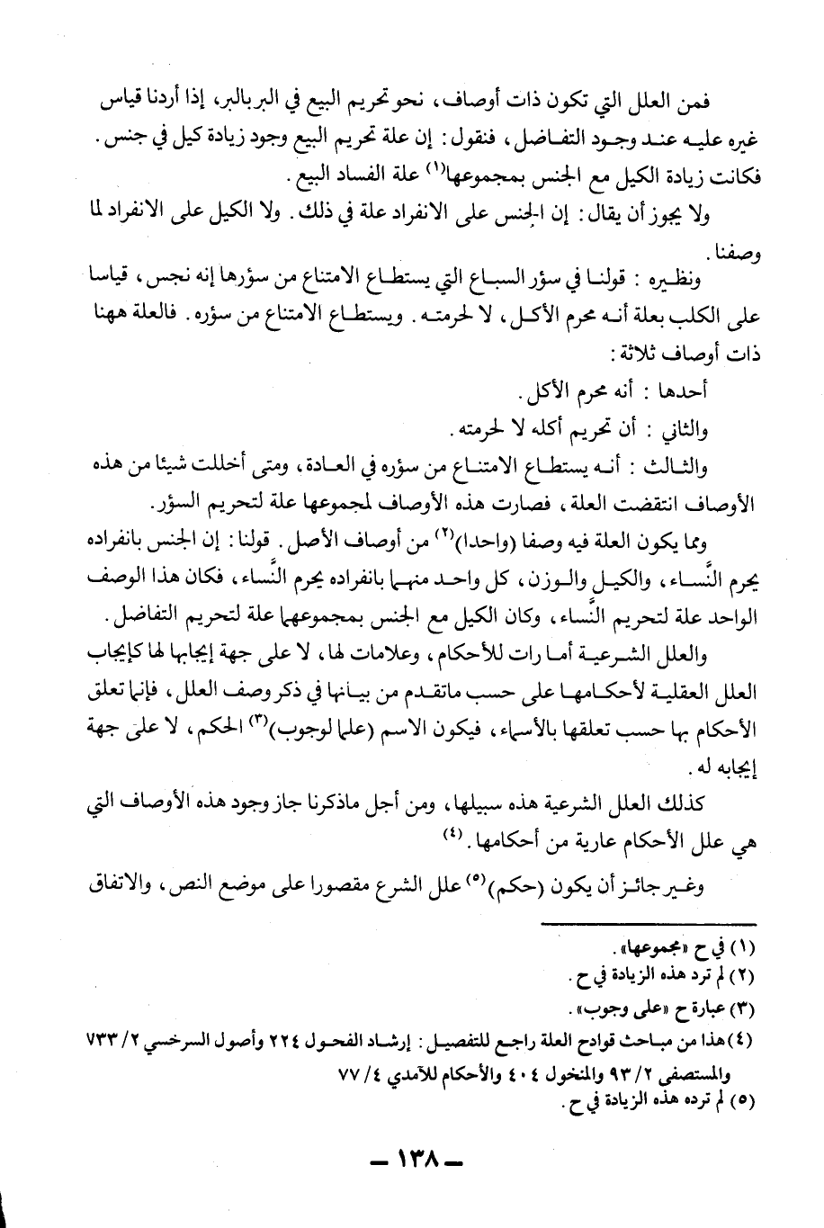كَذَلِكَ الْعِلَلُ الشَّرْعِيَّةُ هَذِهِ سَبِيلُهَا، وَمِنْ أَجْلِ مَا ذَكَرْنَا جَازَ وُجُودُ هَذِهِ الْأَوْصَافِ - الَّتِي هِيَ عِلَلُ الْأَحْكَامِ - عَارِيَّةً مِنْ أَحْكَامِهَا. وَغَيْرُ جَائِزٍ أَنْ يَكُونَ (حُكْمُ) عِلَلِ الشَّرْعِ مَقْصُورًا عَلَى مَوْضِعِ النَّصِّ، وَالِاتِّفَاقِ
