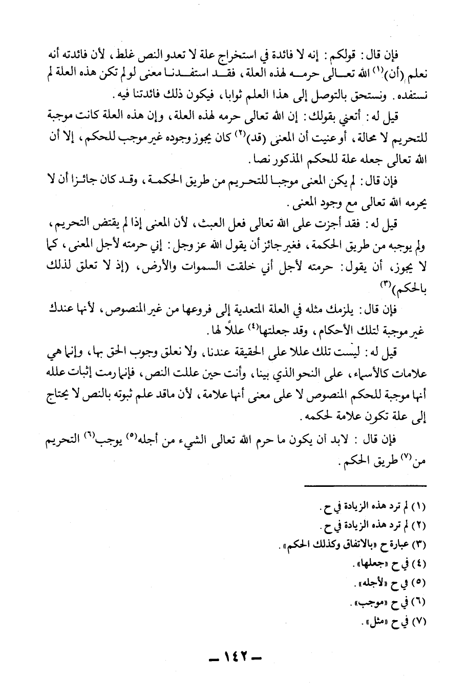 فَإِنْ قَالَ: قَوْلُكُمْ: إنَّهُ لَا فَائِدَةَ فِي اسْتِخْرَاجِ عِلَّةٍ لَا تَعْدُو النَّصَّ غَلَطٌ؛ لِأَنَّ فَائِدَتَهُ أَنَّهُ نَعْلَمُ (أَنَّ) اللَّهَ تَعَالَى حَرَّمَهُ لِهَذِهِ الْعِلَّةِ، فَقَدْ اسْتَفَدْنَا مَعْنًى لَوْ لَمْ تَكُنْ هَذِهِ الْعِلَّةُ لَمْ نَسْتَفِدْهُ. وَنَسْتَحِقُّ بِالتَّوَصُّلِ إلَى هَذَا الْعِلْمِ ثَوَابًا، فَيَكُونُ ذَلِكَ فَائِدَتَنَا فِيهِ.
