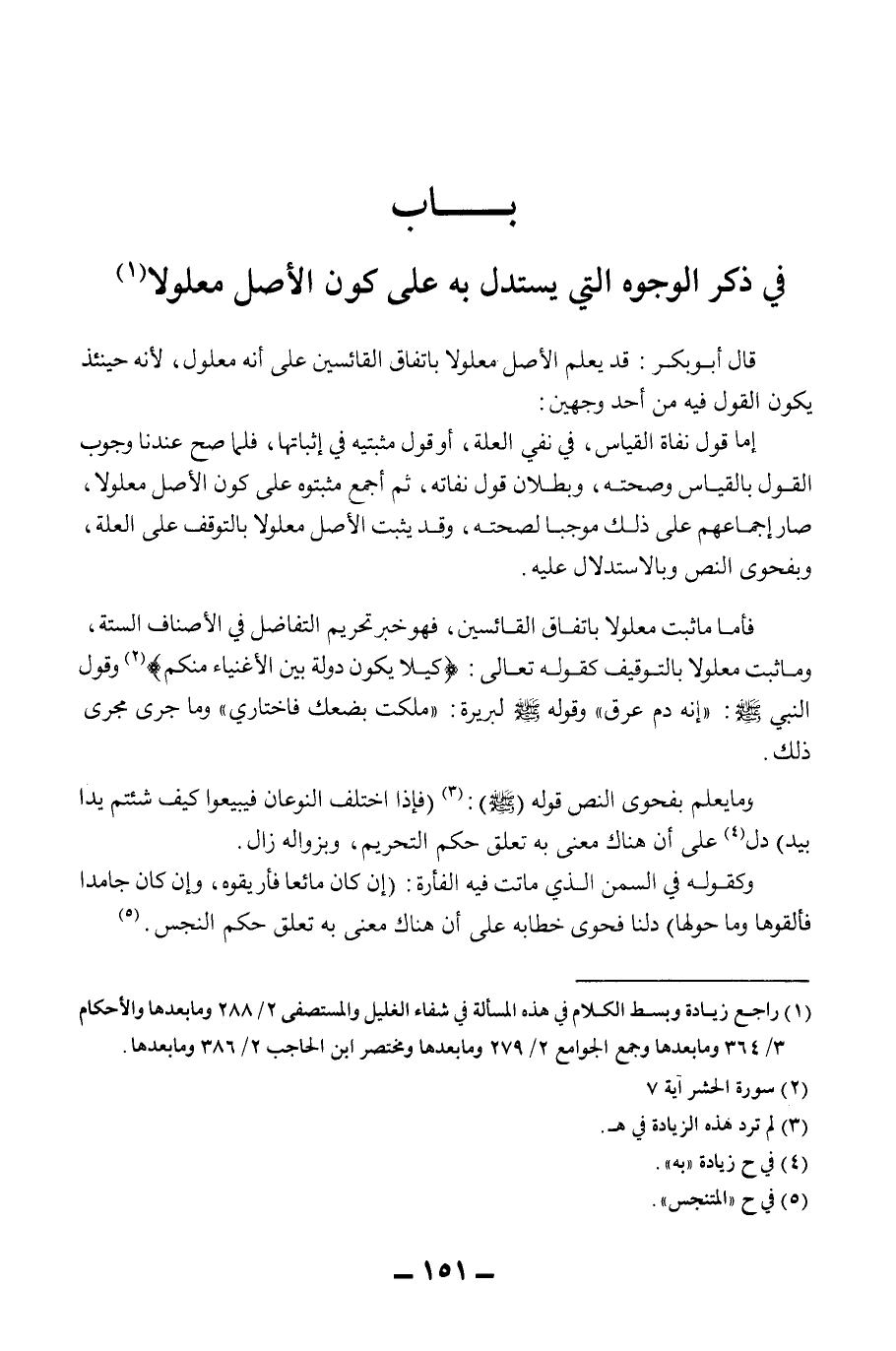 [بَابٌ فِي ذِكْرِ الْوُجُوهِ الَّتِي يُسْتَدَلُّ بِهِ عَلَى كَوْنِ الْأَصْلِ فِي الْقِيَاس مَعْلُولًا]