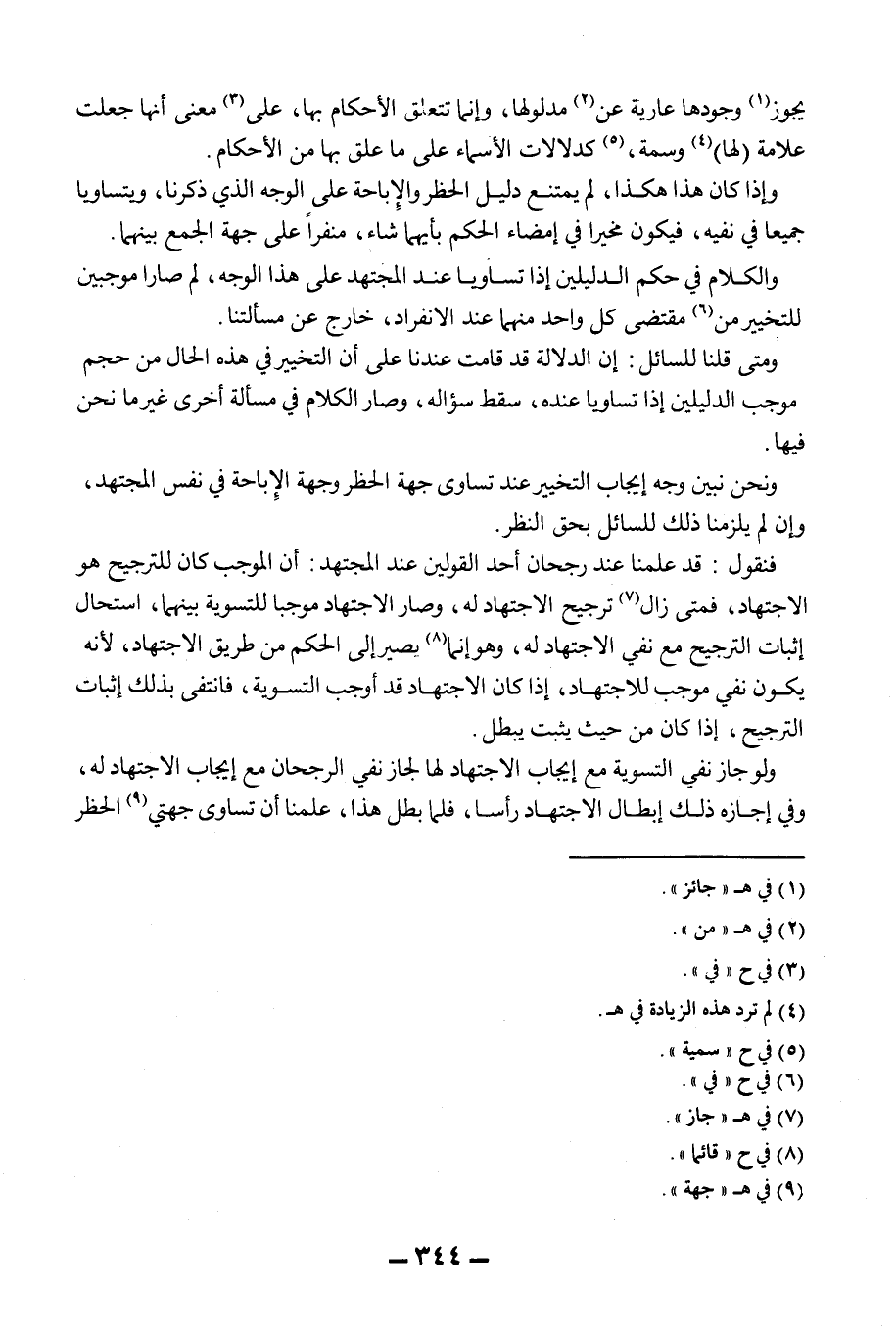وَلَوْ جَازَ نَفْيُ التَّسْوِيَةِ مَعَ إيجَابِ الِاجْتِهَادِ لَهَا لَجَازَ نَفْيُ الرُّجْحَانِ مَعَ إيجَابِ الِاجْتِهَادِ لَهُ، وَفِي إجَازَةِ ذَلِكَ إبْطَالُ الِاجْتِهَادِ رَأْسًا، فَلَمَّا بَطَلَ هَذَا، عَلِمْنَا أَنَّ تَسَاوِي جِهَتَيْ الْحَظْرِ
