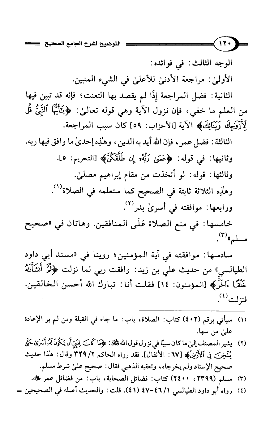 الأولى: مراجعة الأدنى للأعلى في الشيء المتبين.