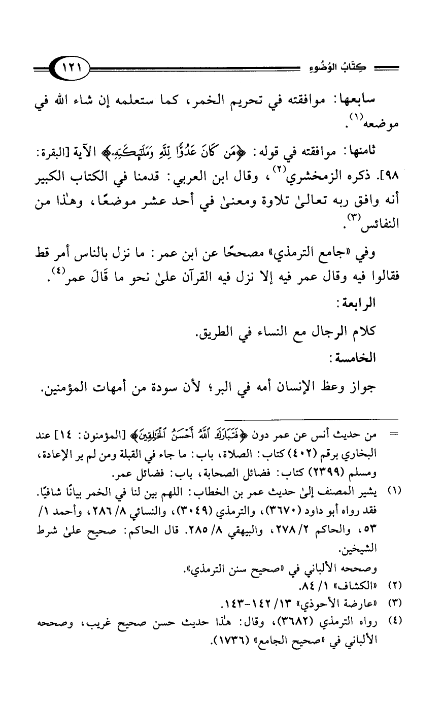 (¬1) يشير المصنف إلى حديث عمر بن الخطاب: اللهم بين لنا في الخمر بيانًا شافيًا. فقد رواه أبوداود (3670)، والترمذي (3049)، والنسائي 8/ 286، وأحمد 1/ 53، والحاكم 2/ 278، والبيهقي 8/ 285. قال الحاكم: صحيح على شرط الشيخين.