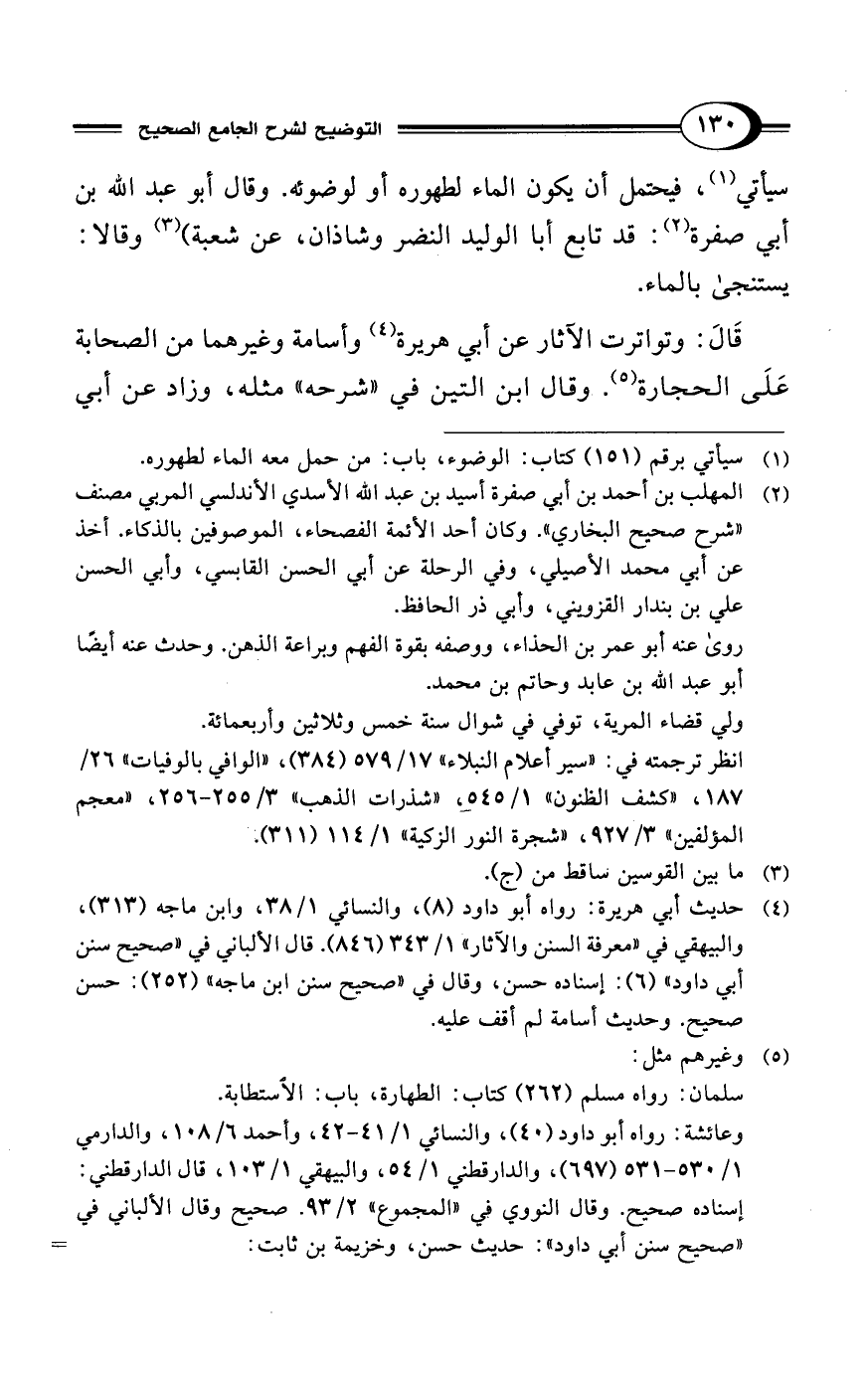 (¬4) حديث أبي هريرة: رواه أبو داود (8)، والنسائي 1/ 38، وابن ماجه (313)، والبيهقي في "معرفة السنن والآثار" 1/ 343 (846). قال الألباني في "صحيح سنن أبي داود" (6): إسناده حسن، وقال في "صحيح سنن ابن ماجه" (252): حسن صحيح. وحديث أسامة لم أقف عليه.