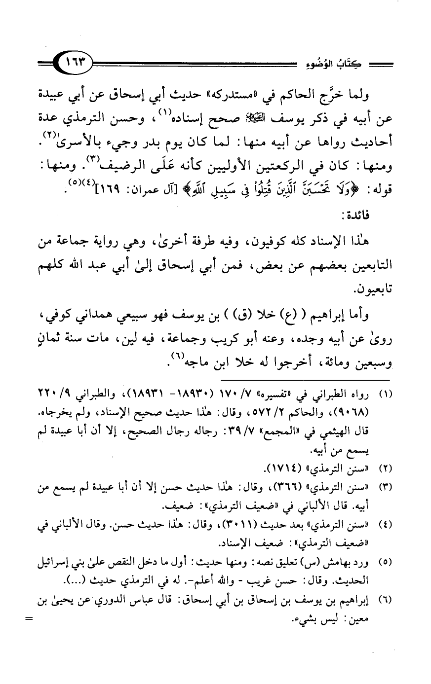 وأما إبراهيم ((ع) خلا (ق)) بن يوسف فهو سبيعي همداني كوفي، روى عن أبيه وجده، وعنه أبو غريب وجماعة، فيه لين، مات سنة ثمانٍ وسبعين ومائة، أخرجوا له خلا ابن ماجه (¬6).