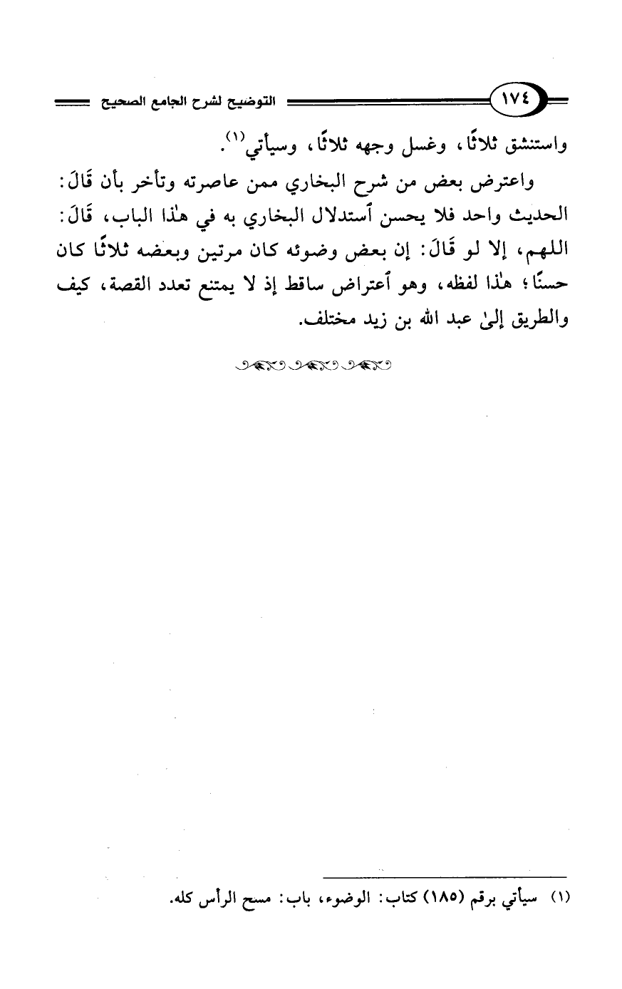 (¬1) سيأتي برقم (185) كتاب: الوضوء، باب: مسح الرأس كله.