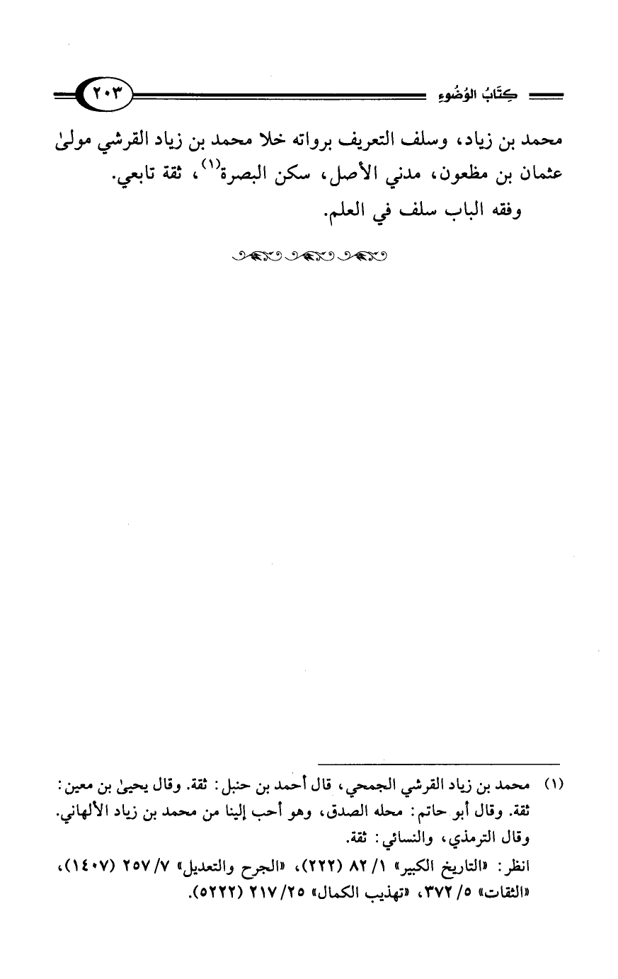 (¬1) محمد بن زياد القرشي الجمحي، قال أحمد بن حنبل: ثقة. وقال يحيى بن معين: ثقة. وقال أبو حاتم: محله الصدق، وهو أحب إلينا من محمد بن زياد الألهاني.
