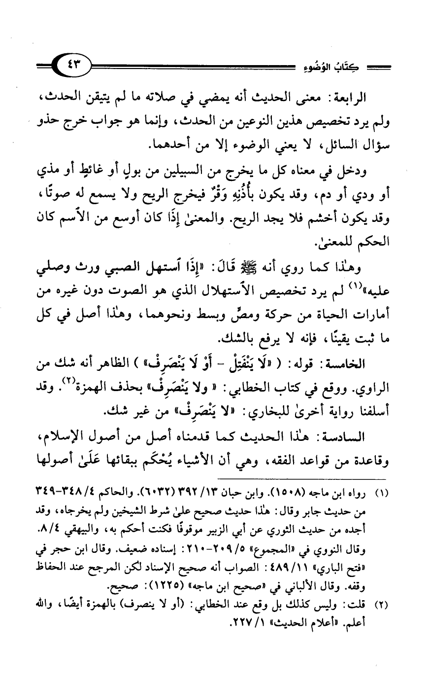 الرابعة: معنى الحديث أنه يمضي في صلاته ما لم يتيقن الحدث، ولم يرد تخصيص هذين النوعين من الحدث، وإنما هو جواب خرج حذو سؤال السائل، لا يعني الوضوء إلا من أحدهما.