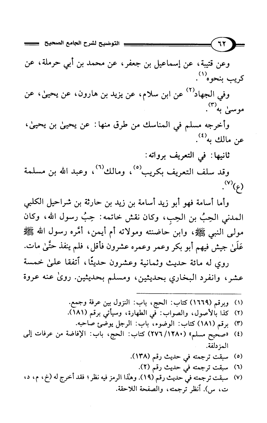 (¬7) سبقت ترجمته في حديث رقم (19). وهذا الرمز فيه نظر؛ فقد أخرج له (خ، م، د، ت، س). انظر ترجمته، والصفحة اللاحقة.