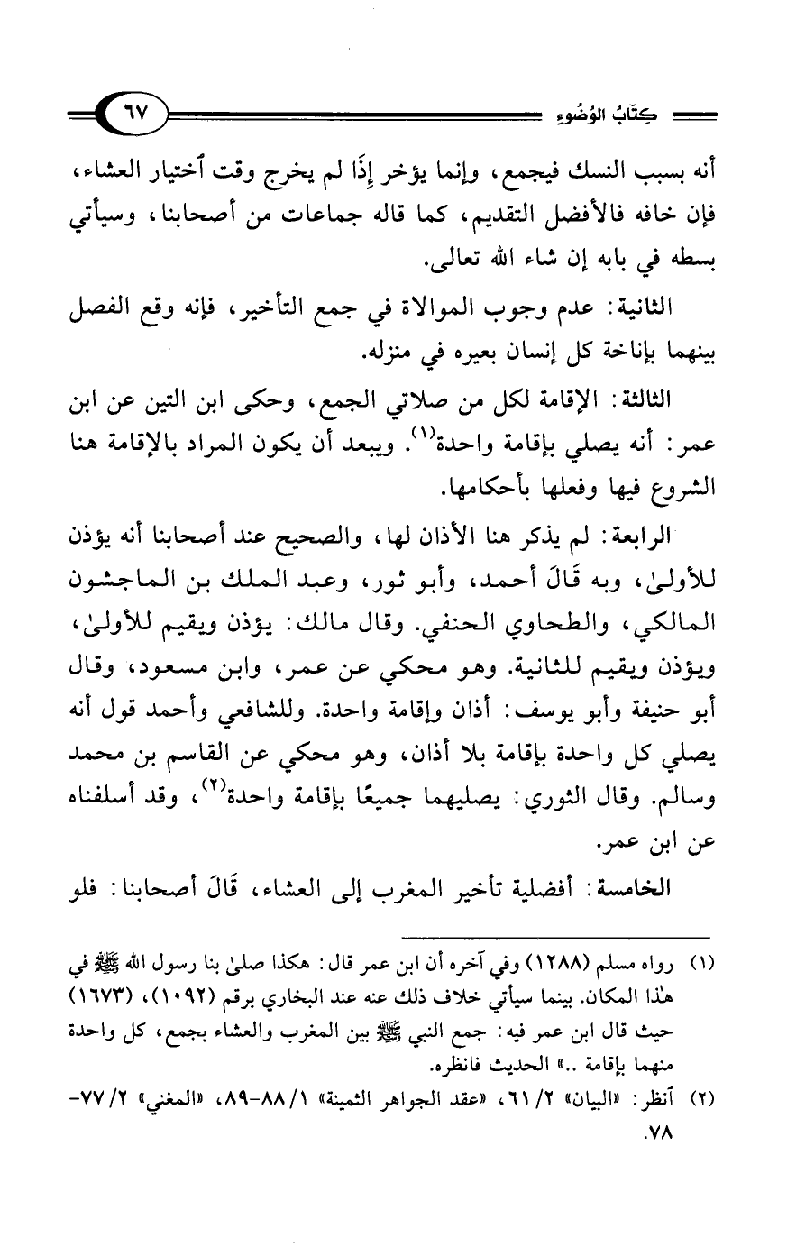 (¬2) انظر: "البيان" 2/ 61، "عقد الجواهر الثمينة" 1/ 88 - 89، "المغني" 2/ 77 - 78.