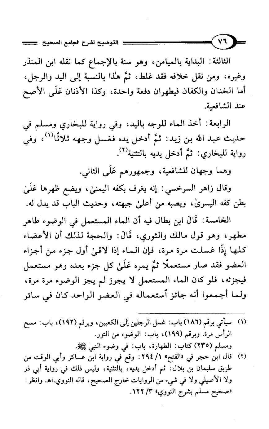 (¬2) قال ابن حجر في "الفتح" 1/ 294: وقع في رواية ابن عساكر وأبي الوقت من طريق سليمان بن بلال: ثم أدخل يديه، بالتثنية، وليس ذلك في رواية أبي ذر ولا الأصيلي ولا في شيء من الروايات خارج الصحيح، قاله النووي. اهـ. وانظر: "صحيح مسلم بشرح النووي" 3/ 122.
