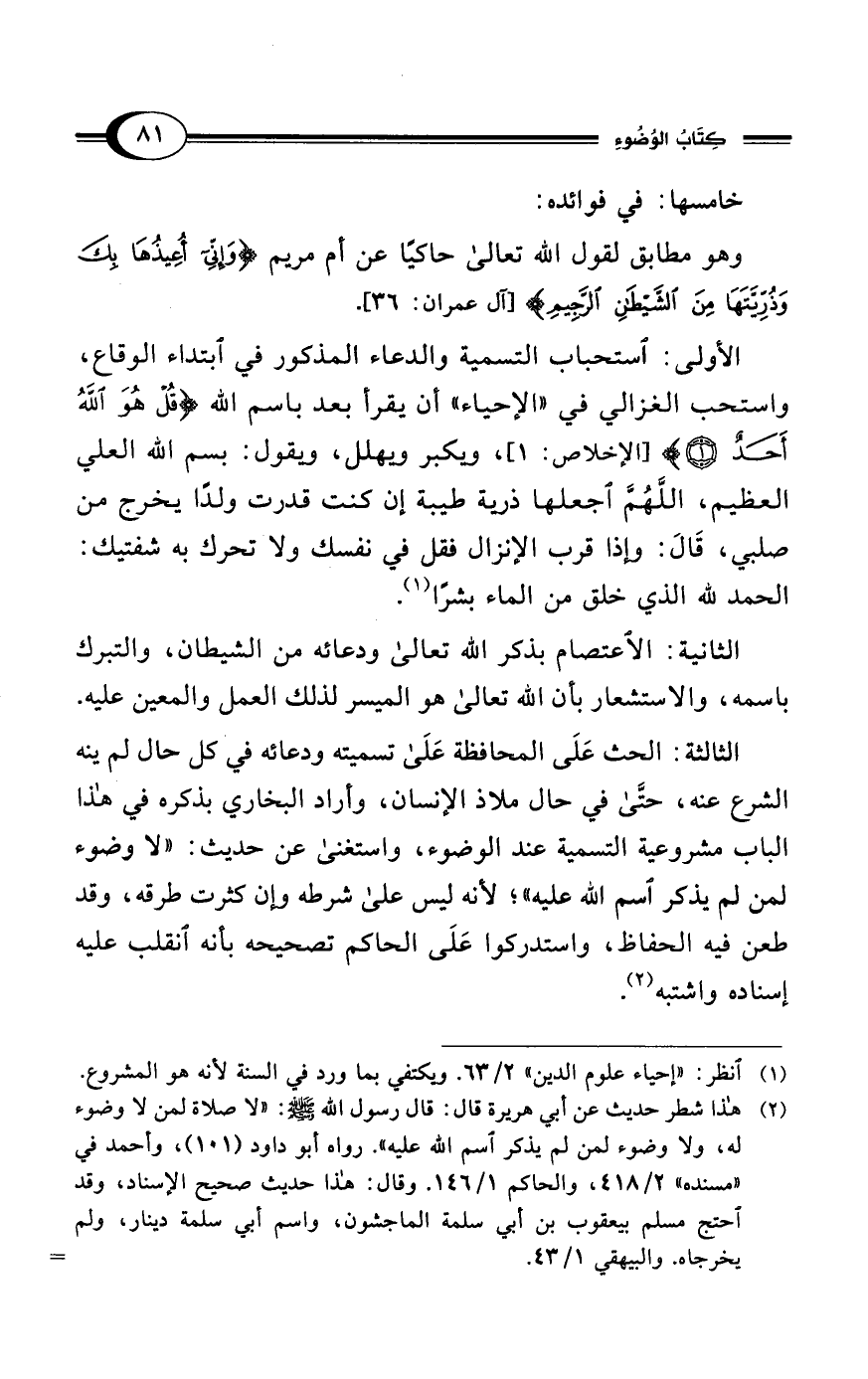 (¬1) انظر: "إحياء علوم الدين" 2/ 63. ويكتفي بما ورد في السنة لأنه هو المشروع.