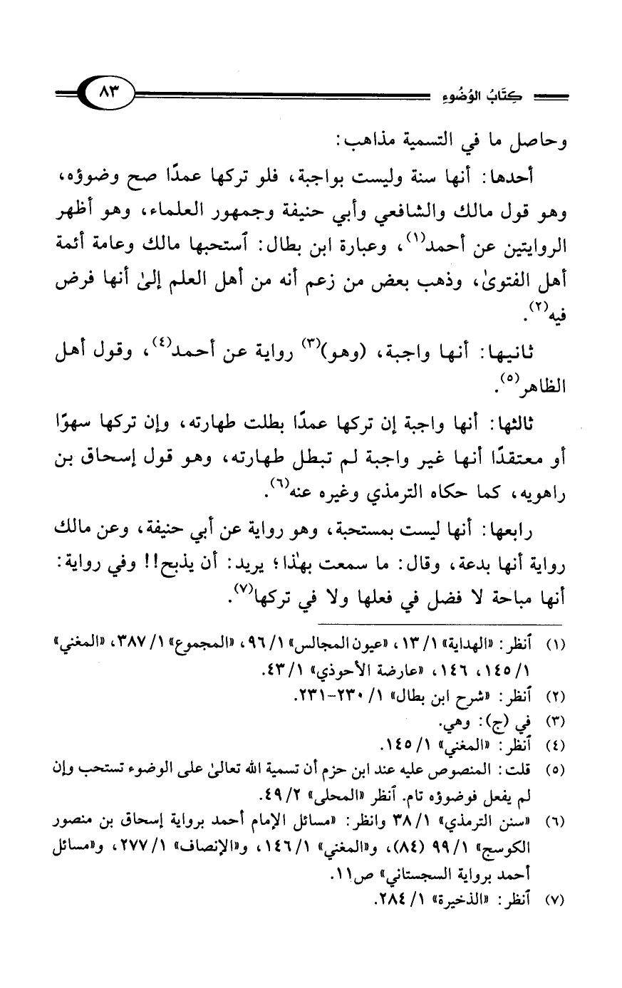 (¬1) انظر: "الهداية" 1/ 13، "عيون المجالس" 1/ 96، "المجموع" 1/ 387، "المغني" 1/ 145، 146، "عارضة الأحوذي" 1/ 43.