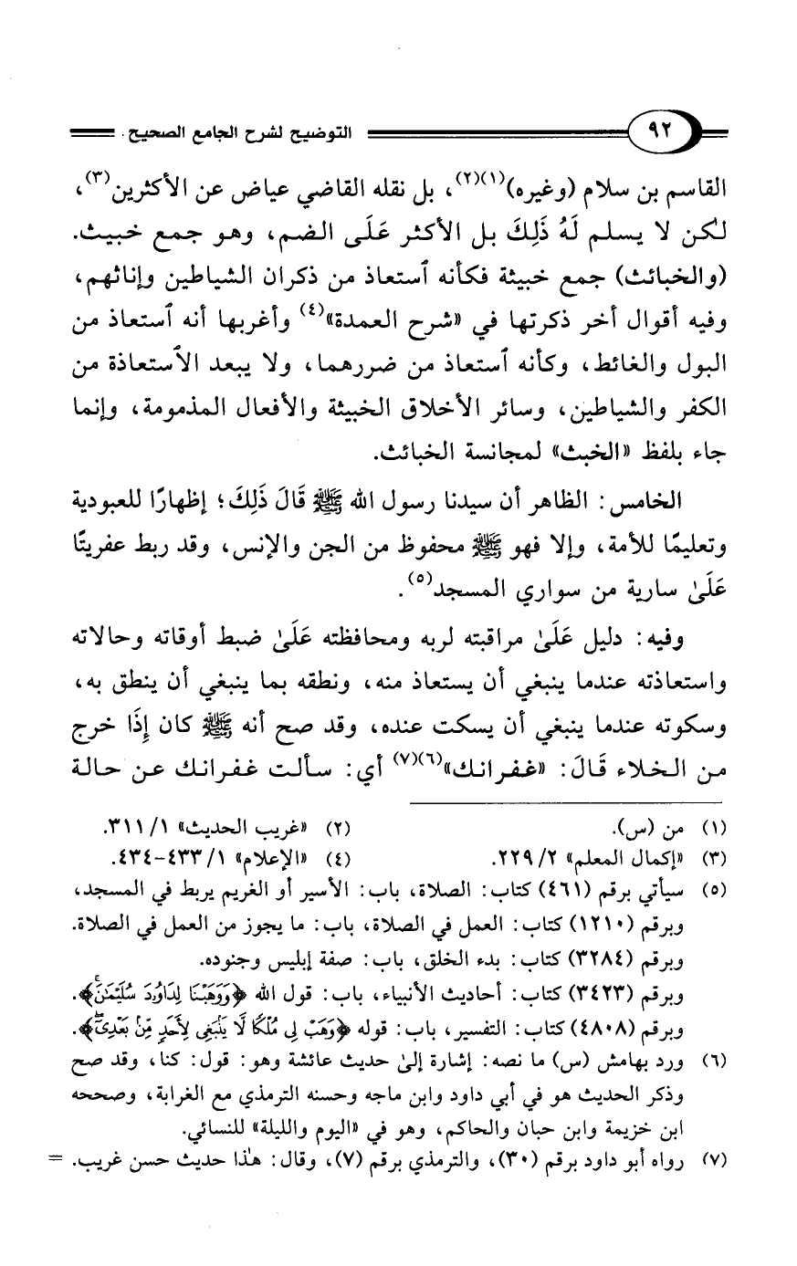 (¬5) سيأتي برقم (461) كتاب: الصلاة، باب: الأسير أو الغريم يربط في المسجد، وبرقم (1210) كتاب: العمل في الصلاة، باب: ما يجوز من العمل في الصلاة.
