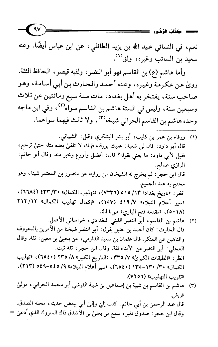 وأما هاشم (ع) بن القاسم فهو أبو النضر، ولقبه قيصر، الحافظ الثقة.