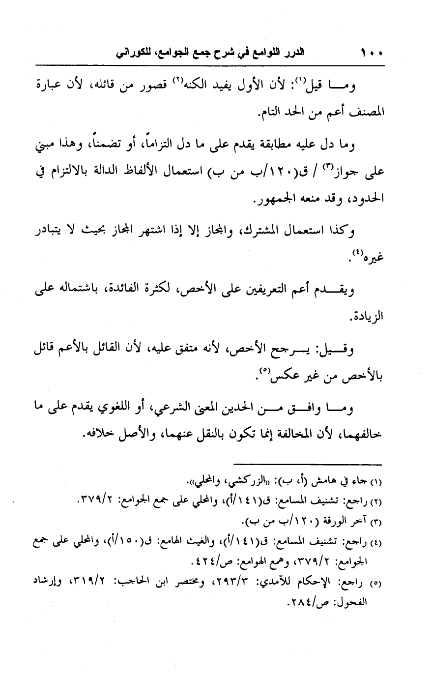 (٤) راجع: تشنيف المسامع: ق (١٤١/ أ)، والغيث الهامع: ق (١٥٠/ أ)، والمحلي على جمع الجوامع: ٢/ ٣٧٩، وهمع الهوامع: ص/ ٤٢٤.