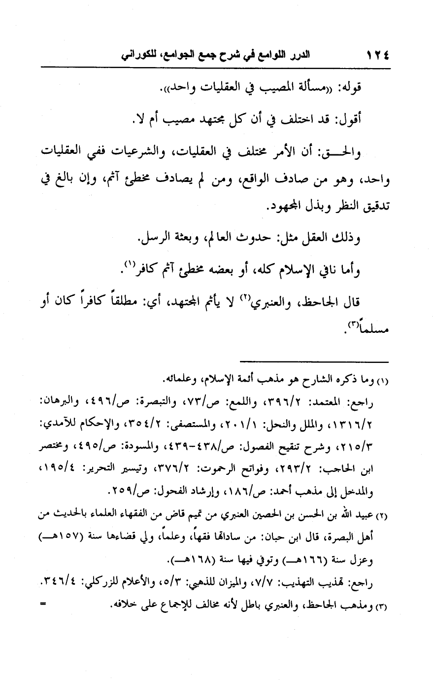 والحق: أن الأمر مختلف في العقليات، والشرعيات ففي العقليات واحد، وهو من صادف الواقع، ومن لم يصادف مخطئ آثم، وإن بالغ في تدقيق النظر وبذل المجهود.