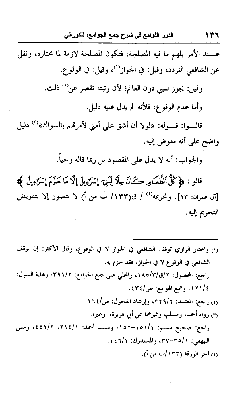 راجع: المحصول: ٢/ ق/ ٣/ ١٨٥، والمحلي على جمع الجوامع: ٢/ ٣٩١، ونهاية السول: ٤/ ٤٢١، وهمع الهوامع: ص/ ٤٣٤.