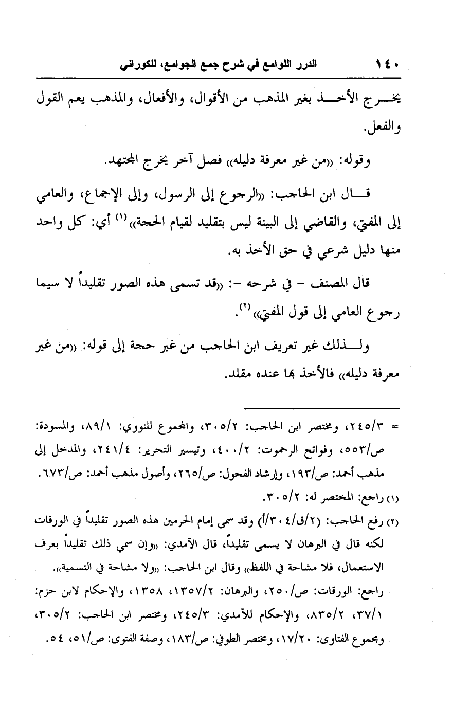 (٢) رفع الحاجب: (٢/ ق/ ٣٠٤/ أ) وقد سمى إمام الحرمين هذه الصور تقليدًا في الورقات لكنه قال في البرهان لا يسمى تقليدًا، قال الآمدي: "وإن سمي ذلك تقليدًا بعرف الاستعمال، فلا مشاحة في اللفظ" وقال ابن الحاجب: "ولا مشاحة في التسمية".