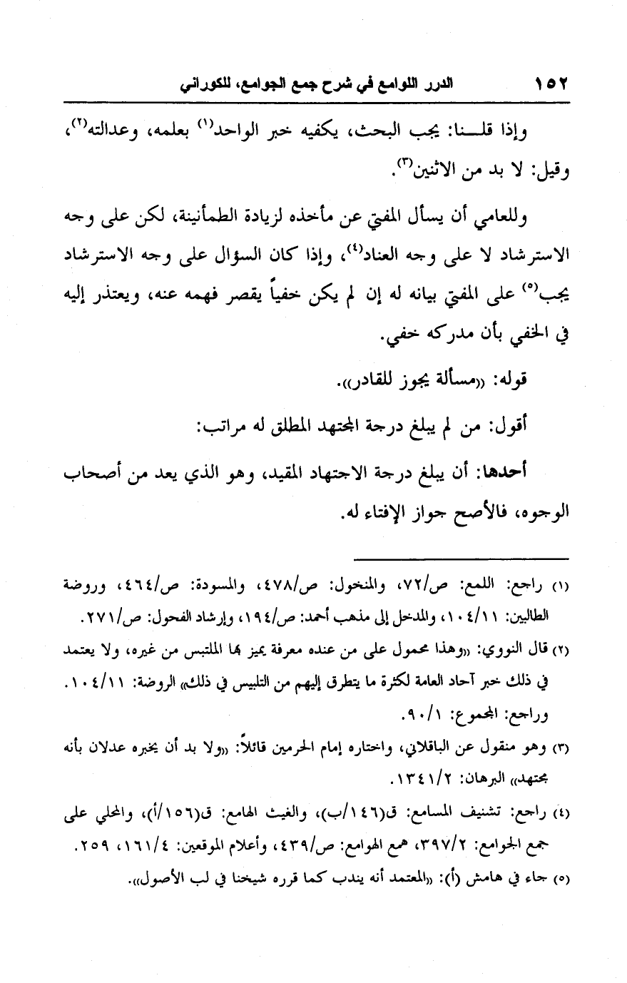 أقول: من لم يبلغ درجة المجتهد المطلق له مراتب: