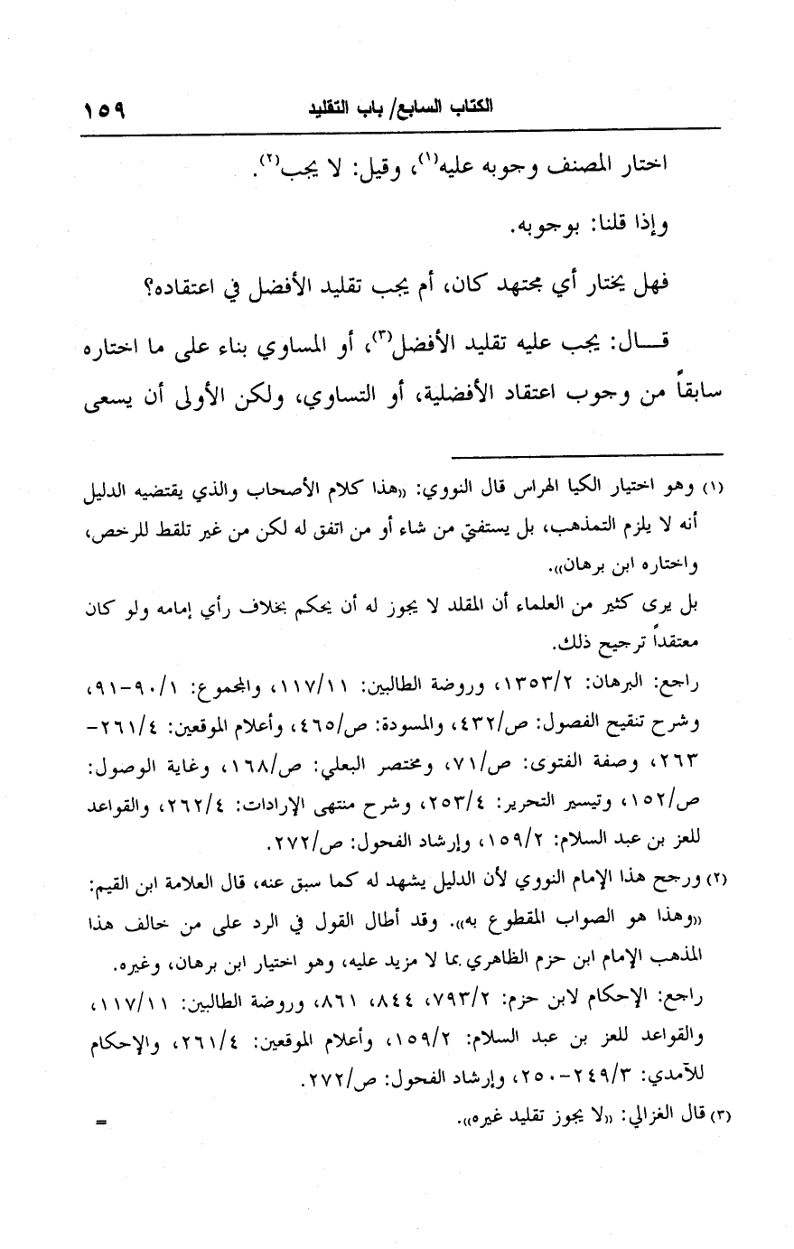 راجع: الإحكام لابن حزم: ٢/ ٧٩٣، ٨٤٤، ٨٦١، وروضة الطالبين: ١١/ ١١٧، والقواعد للعز بن عبد السلام: ٢/ ١٥٩، وأعلام الموقعين: ٤/ ٢٦١، والإحكام للآمدي: ٣/ ٢٤٩ - ٢٥٠، وإرشاد الفحول: ص/ ٢٧٢.