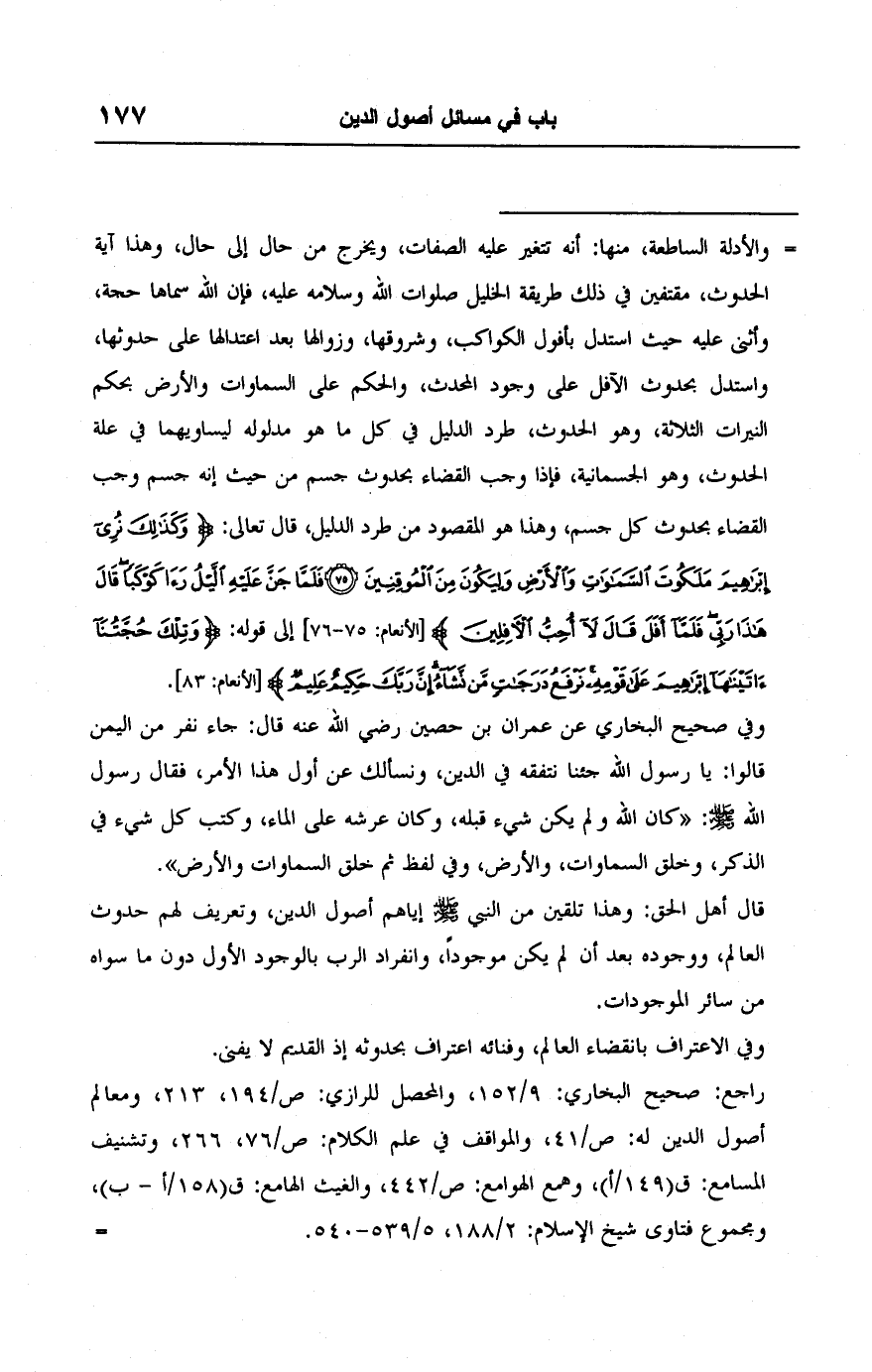 راجع: صحيح البخاري: ٩/ ١٥٢، والمحصل للرازي: ص/ ١٩٤، ٢١٣، ومعالم أصول الدين له: ص/ ٤١، والمواقف في علم الكلام: ص/ ٧٦، ٢٦٦، وتشنيف المسامع: ق (١٤٩/ أ)، وهمع الهوامع: ص/ ٤٤٢، والغيث الهامع: ق (١٥٨/ أ - ب)، ومجموع فتاوى شيخ الإسلام: ٢/ ١٨٨، ٥/ ٥٣٩ - ٥٤٠. =