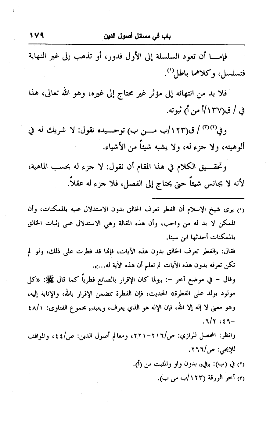 (١) يرى شيخ الإسلام أن الفطر تعرف الخالق بدون الاستدلال عليه بالممكنات، وأن الممكن لا بد له من واجب، وأن هذه المقالة وهي الاستدلال على إثبات الخالق بالممكنات أحدثها ابن سينا.