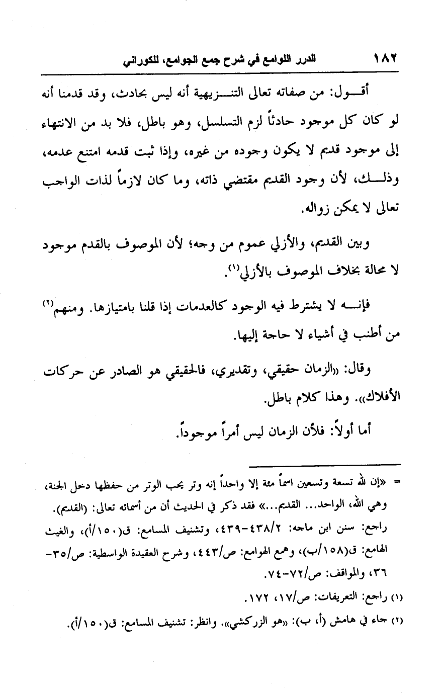 راجع: سنن ابن ماجه: ٢/ ٤٣٨ - ٤٣٩، وتشنيف المسامع: ق (١٥٠/ أ)، والغيث الهامع: ق (١٥٨/ ب)، وهمع الهوامع: ص/ ٤٤٣، وشرح العقيدة الواسطية: ص/ ٣٥ - ٣٦، والمواقف: ص/ ٧٢ - ٧٤.