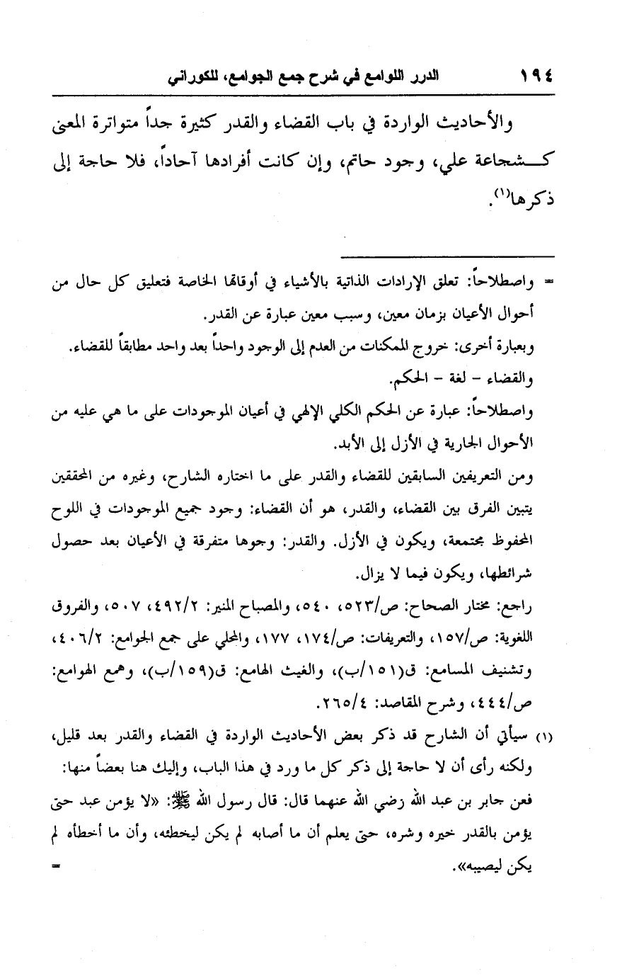 والأحاديث الواردة في باب القضاء والقدر كثيرة جدًا متواترة المعنى كشجاعة علي، وجود حاتم، وإن كانت أفرادها آحادًا، فلا حاجة إلى ذكرها (١).