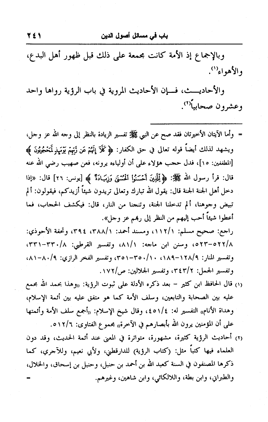 والأحاديث، فإن الأحاديث المروية في باب الرؤية رواها واحد وعشرون صحابيًا (٢).