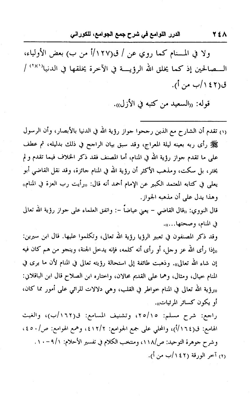 راجع: شرح مسلم: ١٥/ ٢٥، وتشنيف المسامع: ق (١٦٢/ ب)، والغيث الهامع: ق (١٦٤/ أ)، والمحلي على جمع الجوامع: ٢/ ٤١٢، وهمع الهوامع: ص/ ٤٥٠، وشرح جوهرة التوحيد: ص/ ١١٨، ومنتخب الكلام في تفسير الأحلام: ١/ ٩ - ١٠.