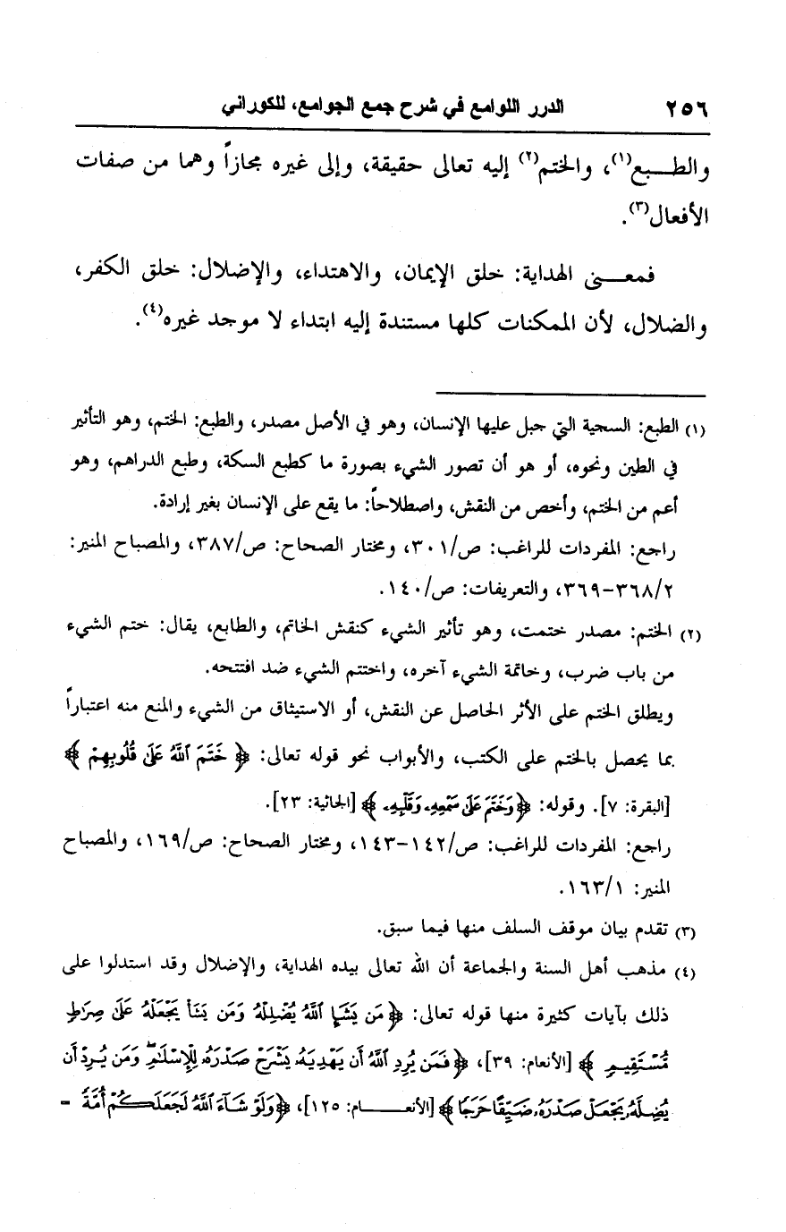 والطبع (١)، والختم (٢) إليه تعالى حقيقة، وإلى غيره مجازًا وهما من صفات الأفعال (٣).