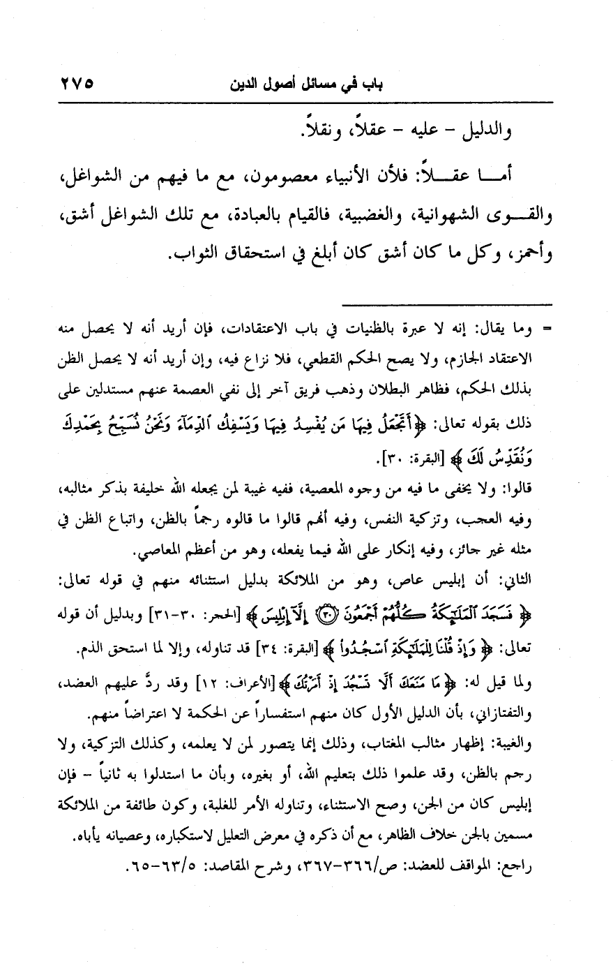 راجع: المواقف للعضد: ص/ ٣٦٦ - ٣٦٧، وشرح المقاصد: ٥/ ٦٣ - ٦٥.